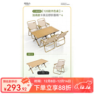原始人户外蛋卷桌便携式折叠桌野餐桌椅露营装备用品野炊野营套装 120款木色桌+加高木色云舒椅*4