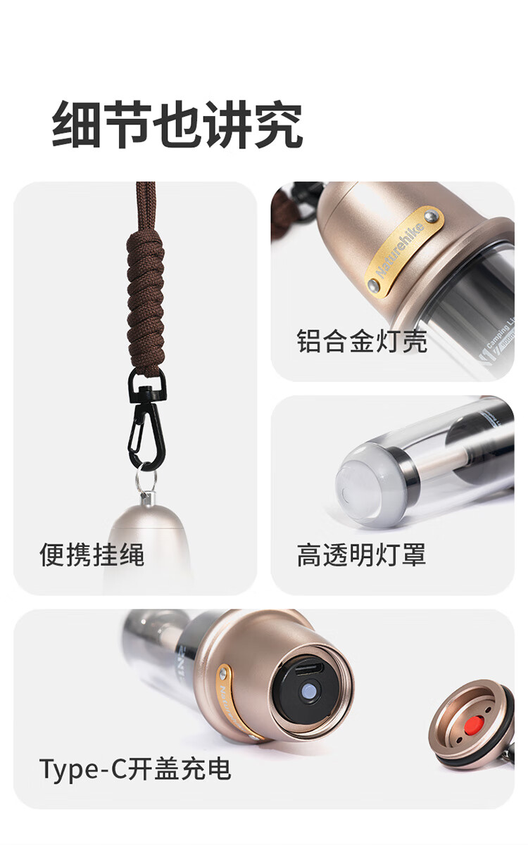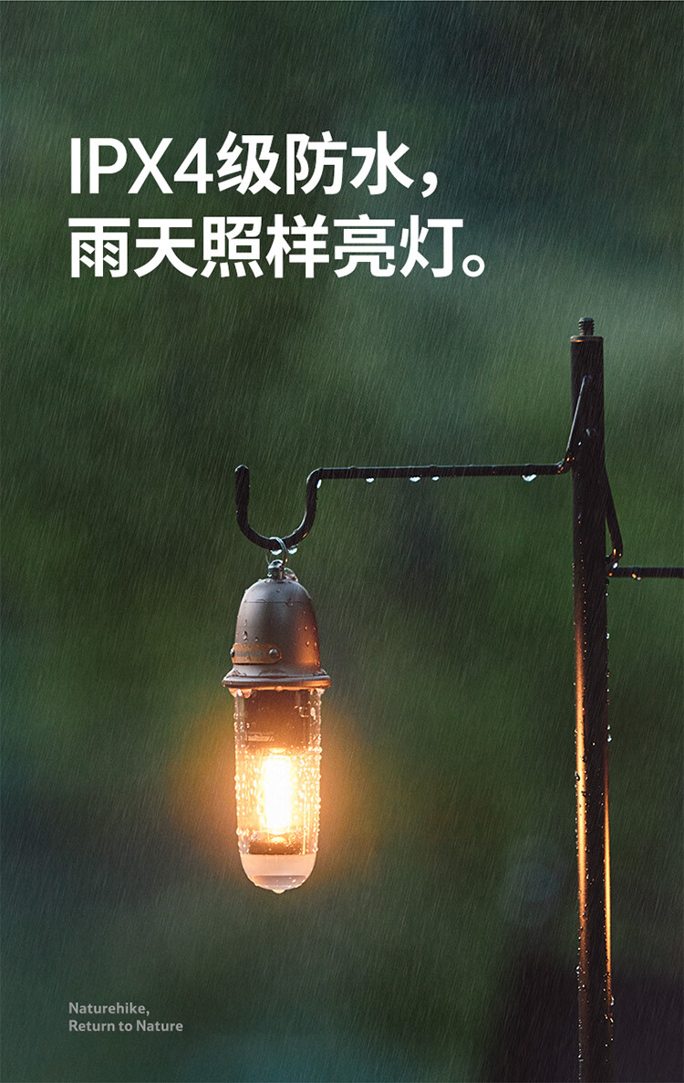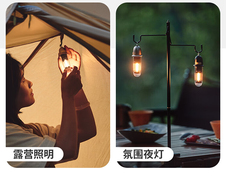 Naturehike挪客户外便携式露营灯野营充电照明灯随身手电筒挂灯营地氛围灯 星夜黑【赠数据线+挂绳】