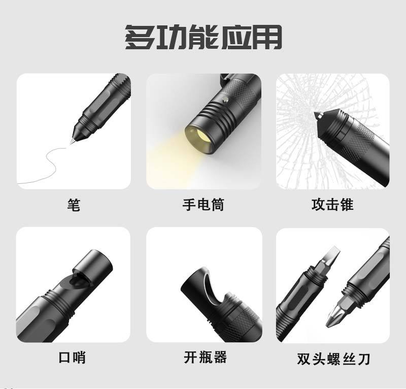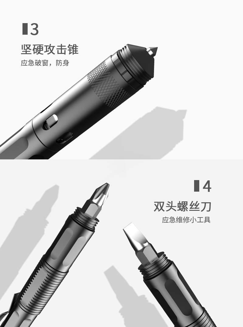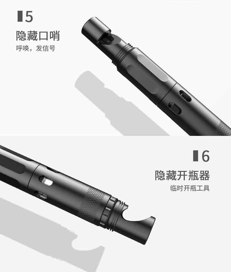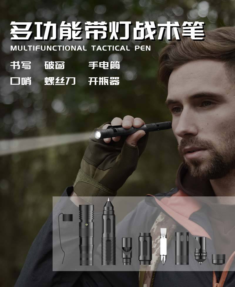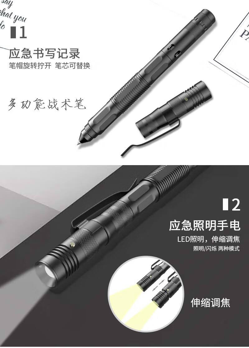 迪拓钨钢头战术笔防身笔防卫笔多功能破窗自救求生酷棍 【新款】笔帽带灯款
