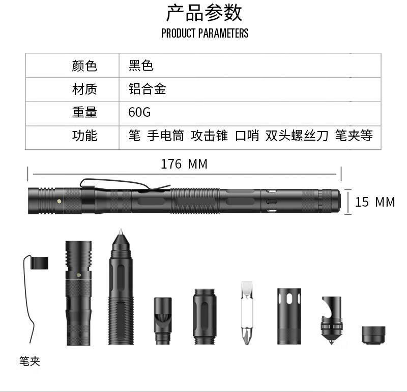 迪拓多功能战术笔钨钢笔女生便携防身武器合法随身个人防护装备 黑色-战术笔