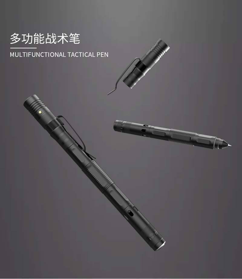 捷骜 多功能带灯战术笔手电 自卫防身破窗锥EDC户外求生多功能战术笔 粉色