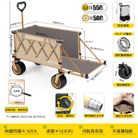 JEEP吉普露营车户外可折叠手推野餐营地超大拖车拉杆摆摊小推车 卡其色+木纹桌板+推把 500L 有刹车