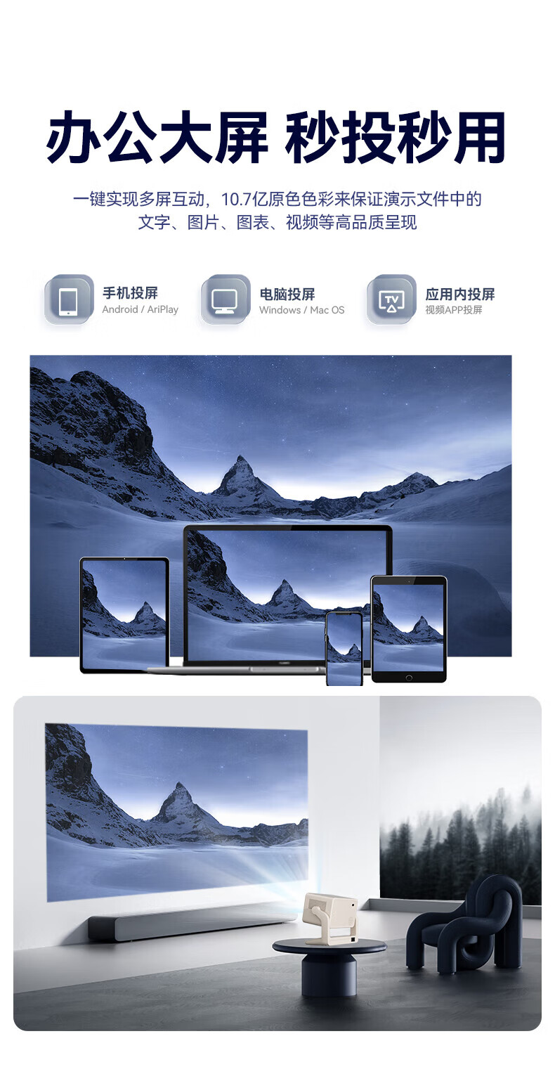 音响给力,清晰度高,亮度高,同屏需要下载app,各大影视可以直接投屏。投影仪可以当做网络电视单独使用,但需要会员。