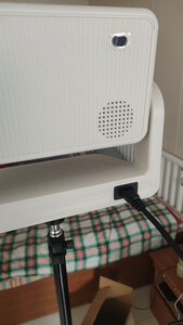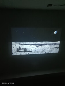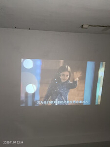 图一关灯,图二是开💡。好清晰可以睡着看和坐着看很好。遇到一些小问题,服务太度好,如果投影仪是自动对焦调节更加好。