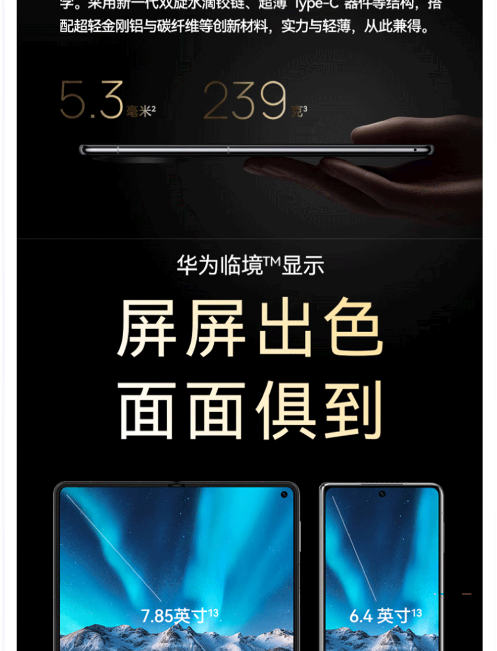 华为展机 Mate X3 折叠屏超轻薄手机 鸿蒙Ai旗舰智能商务机 国行正品 羽砂黑 12GB+256GB