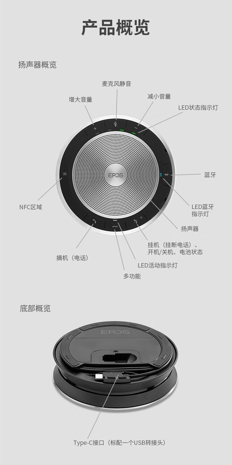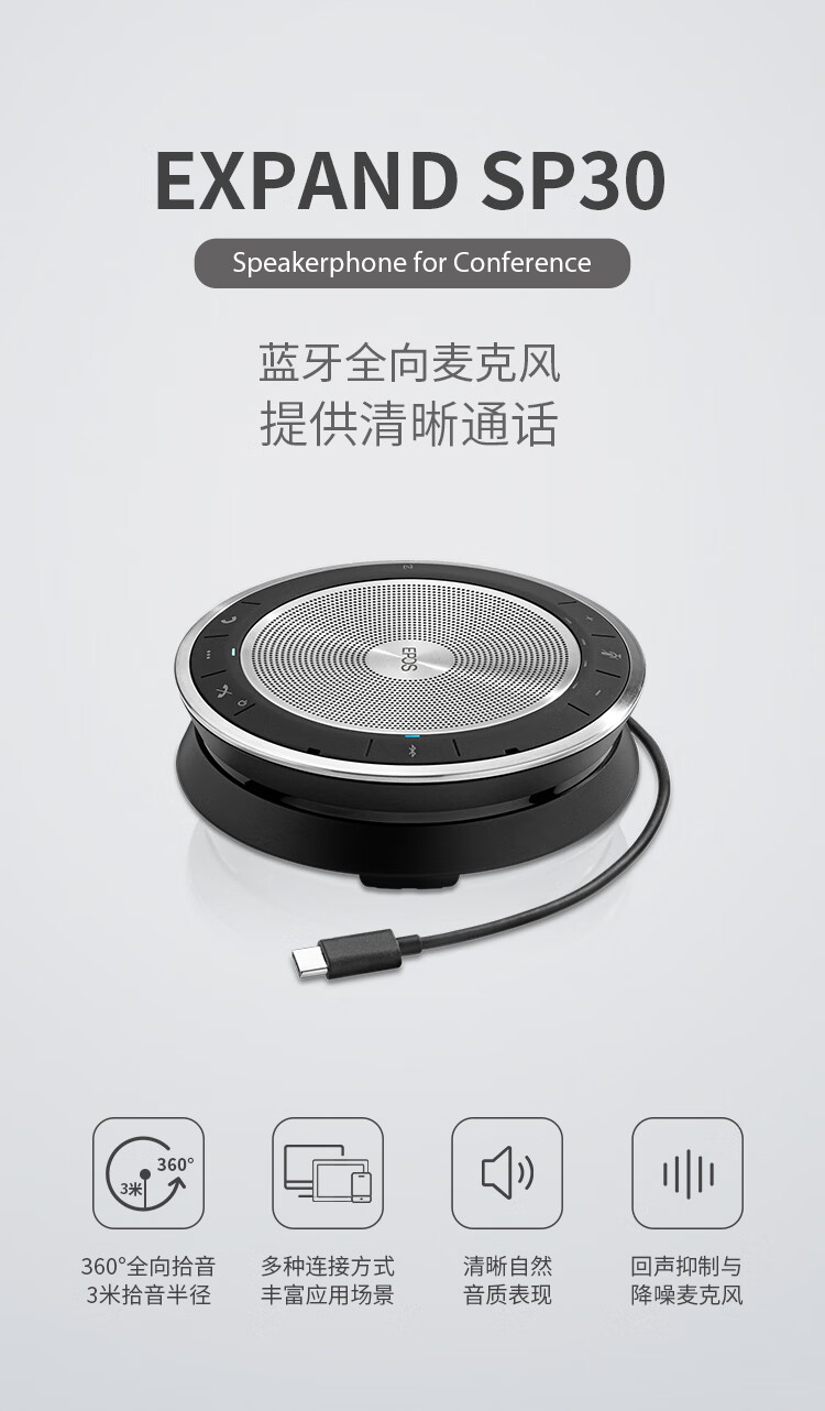 音珀 EPOS EXPAND SP30系列 视频会议全向麦克风蓝牙USB 3米拾音半径 18小时长待机全双工支持以旧换新 SP30无蓝牙适配器