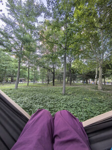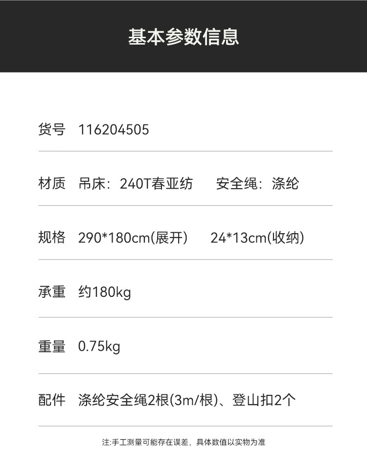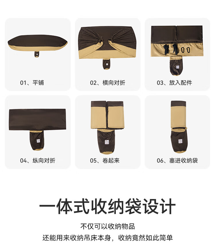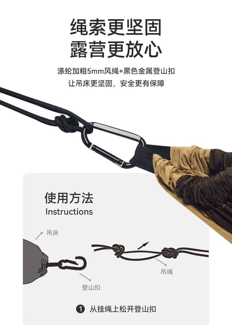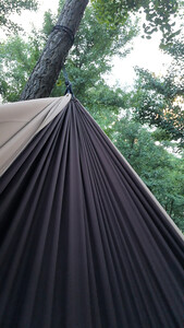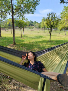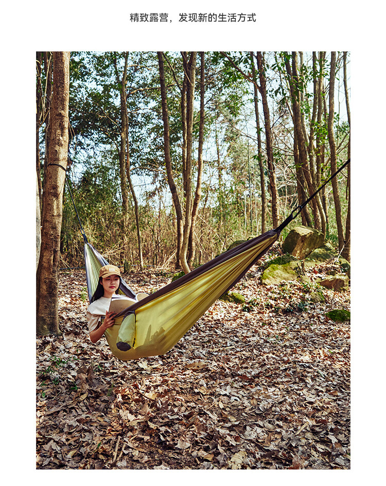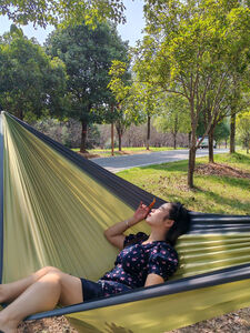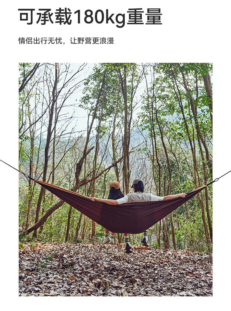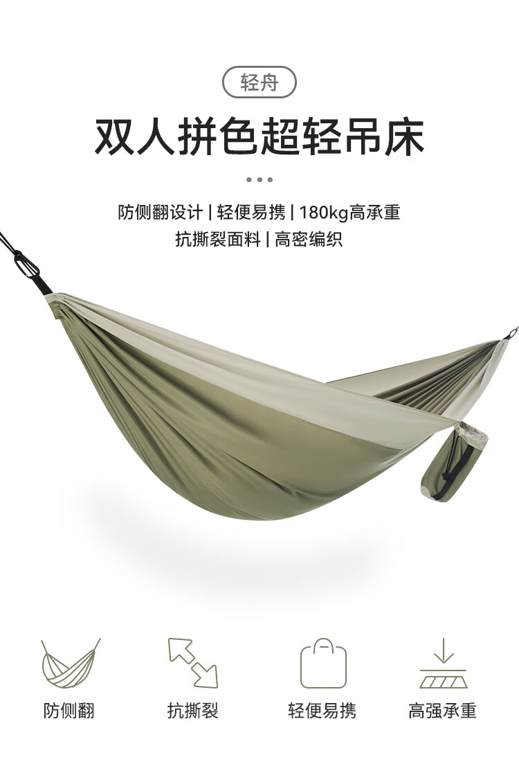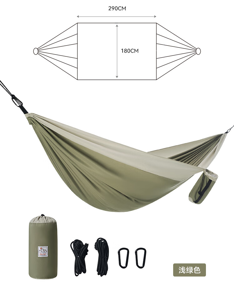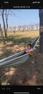 吊床买了很久了,第一次使用,安装比较简单,吊床也够大,轻薄方便携带