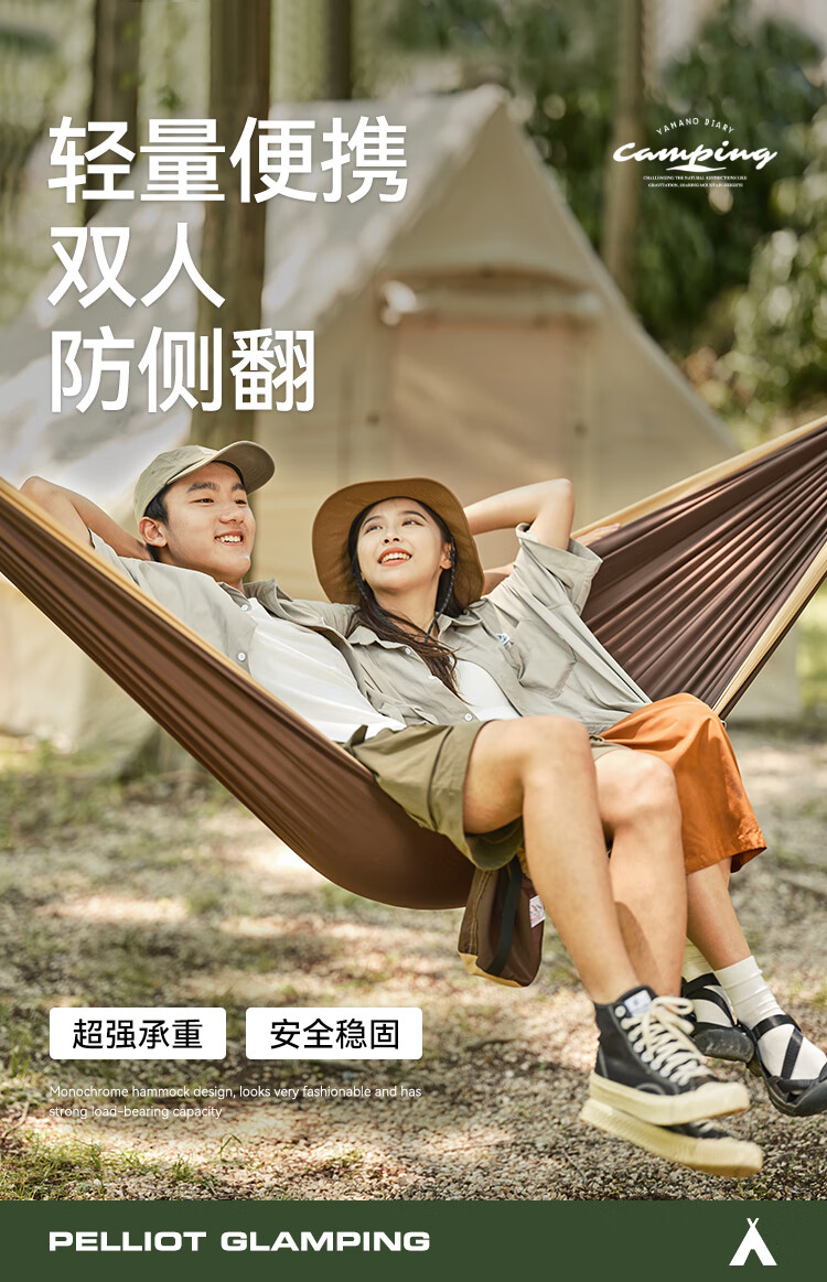 伯希和户外露营吊床加厚室内双人吊椅防侧翻秋千宿舍吊篮16204505栗棕色