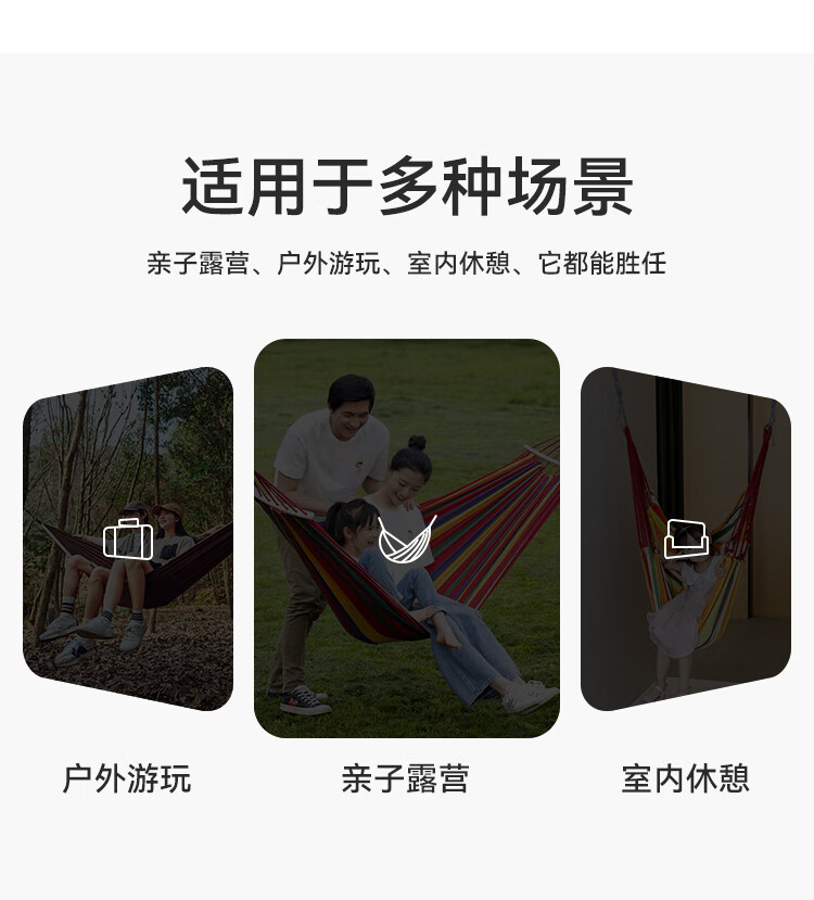 思凯乐户外吊床秋千帆布单人加厚家用野外露营防侧翻吊床 咖色【加厚精织帆布】承重500斤 均码