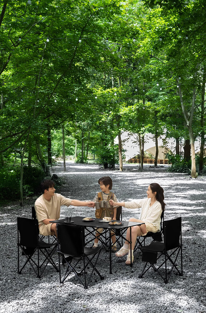 Guide Series户外铝合金折叠桌露营桌便携升降沙滩烧烤桌加宽桌自驾游车载桌 新 加宽金属 木纹黑色