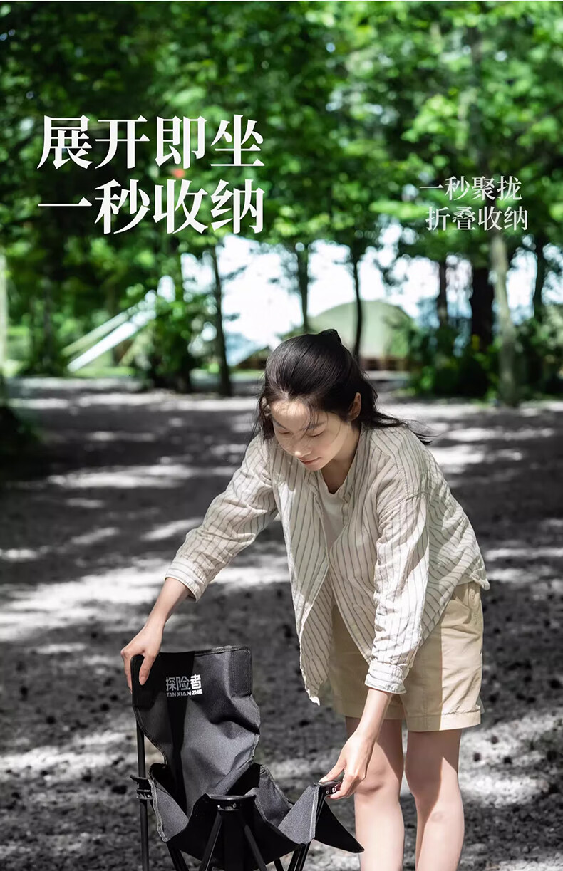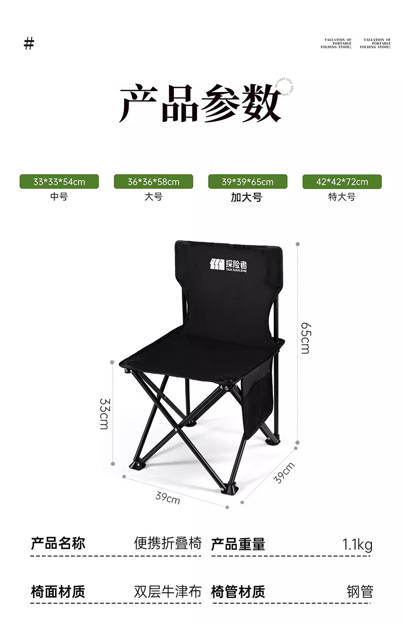探险者户外折叠椅钓鱼椅小凳子露营椅子野餐椅子便捷式折叠小马扎 大号细沙黄折叠椅