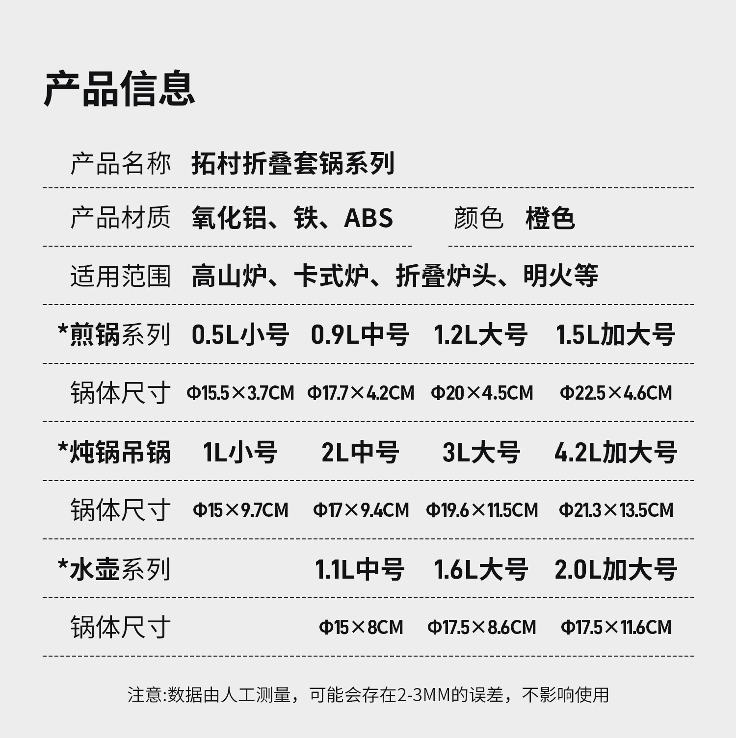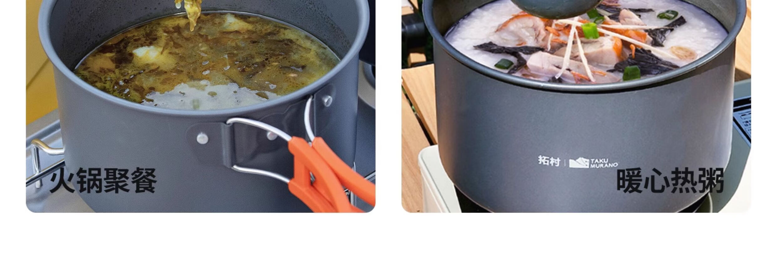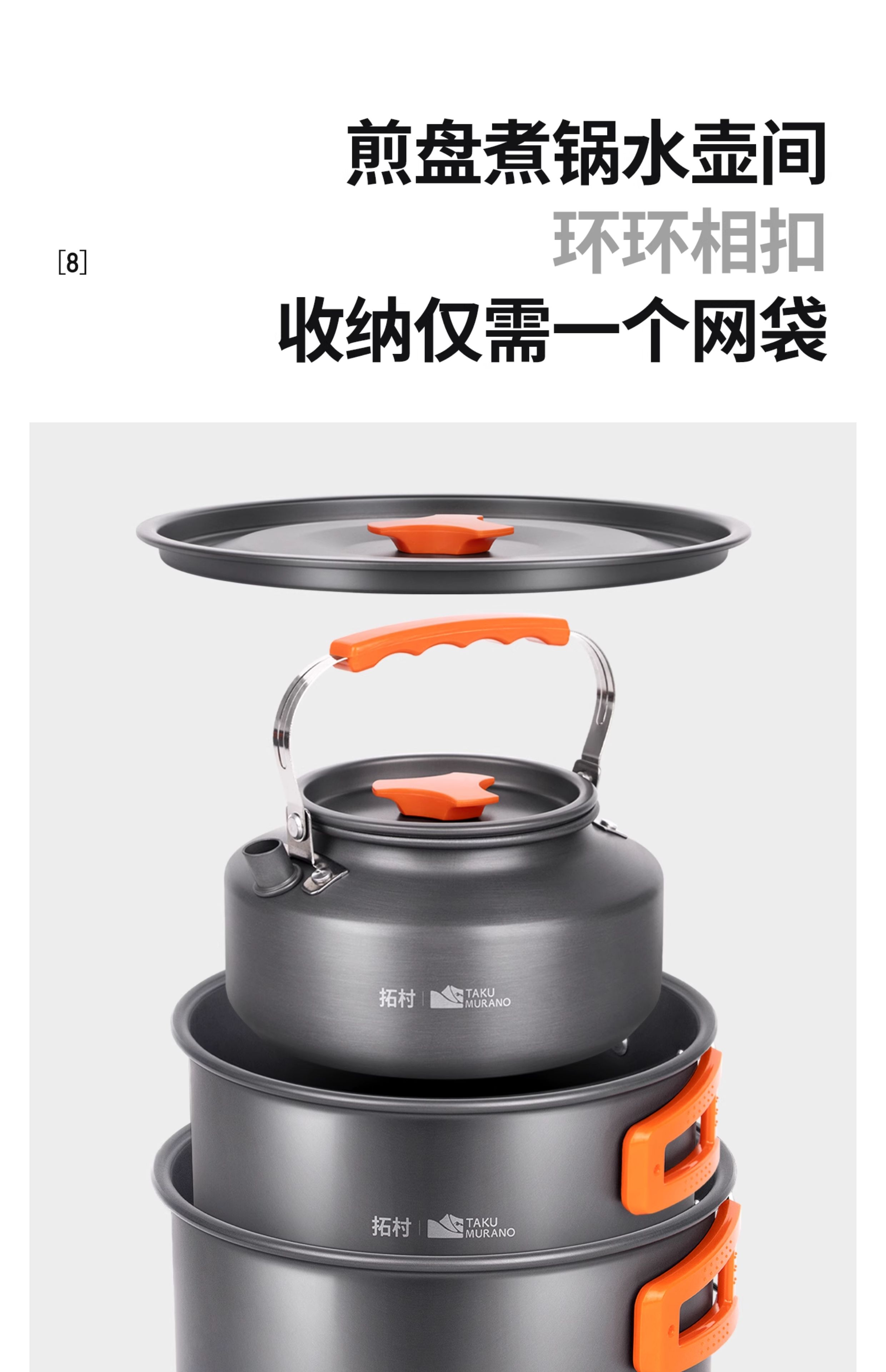 拓村户外锅具套装便携式火锅烧水壶露营野炊野营装备全套用品三件套 【橙色】大号煮锅(带收纳袋)