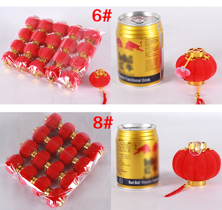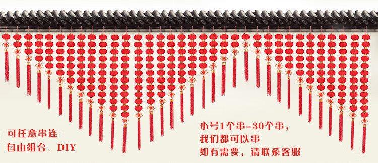 灯笼串 植绒小灯笼挂饰大红灯笼串灯挂件中秋国庆喜庆装饰阳台结婚庆连串灯笼 4号 6个/串(可定制任意串)