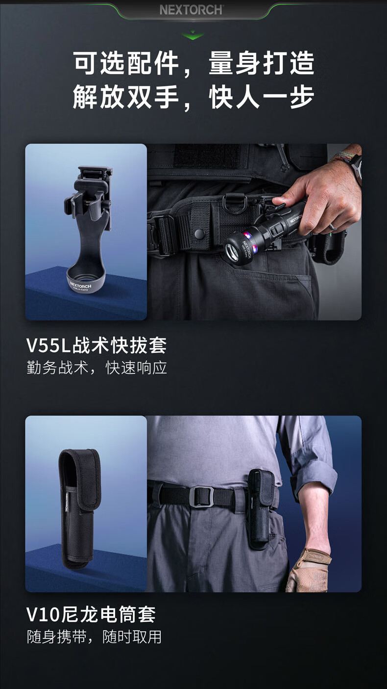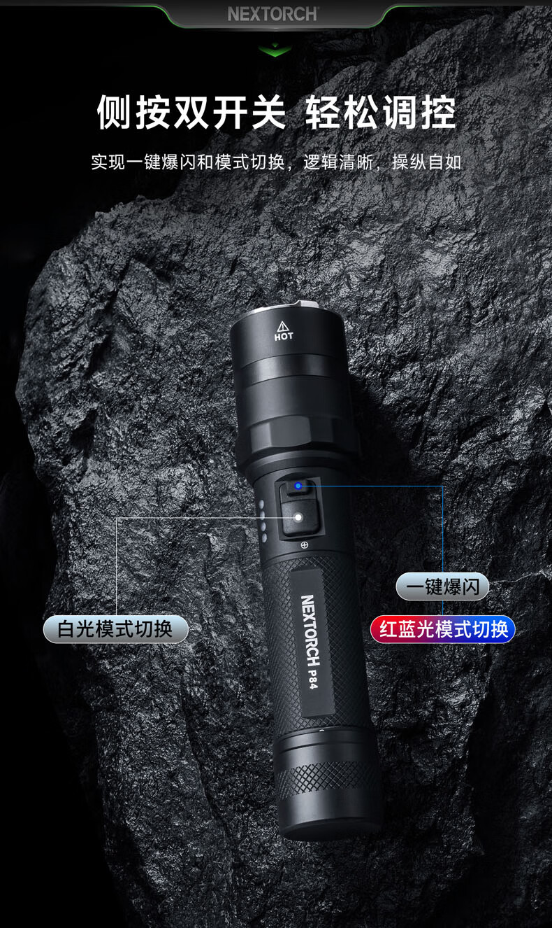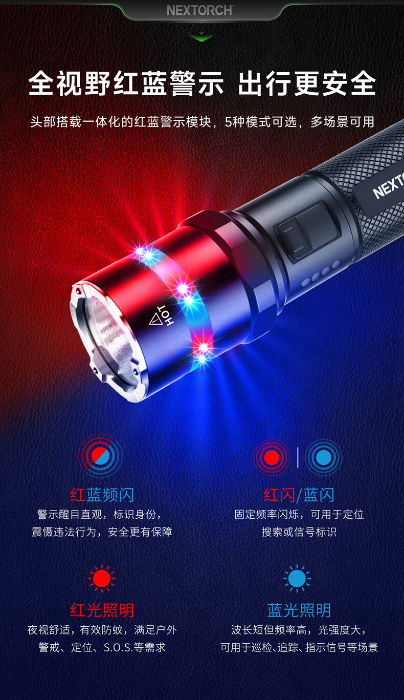 纳丽德(NEXTORCH)P84勤务手电筒红蓝闪救援手电户外高亮手电筒一键爆闪军工手电筒 P84+V10尼龙套