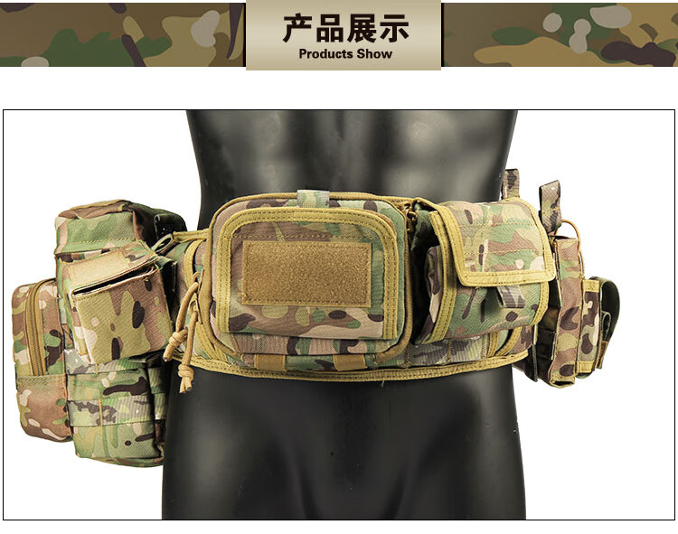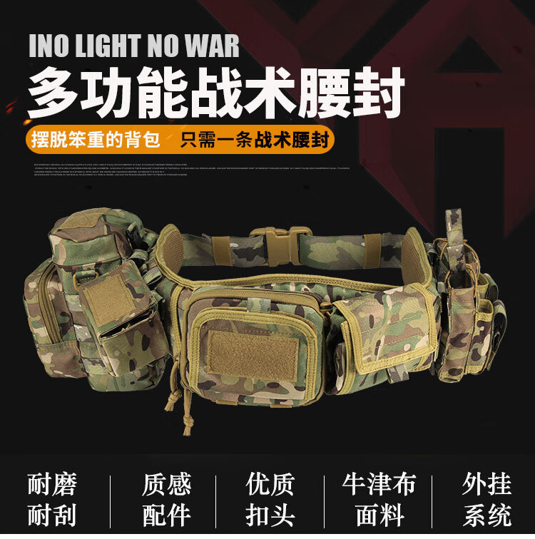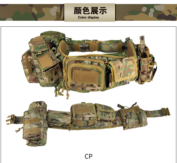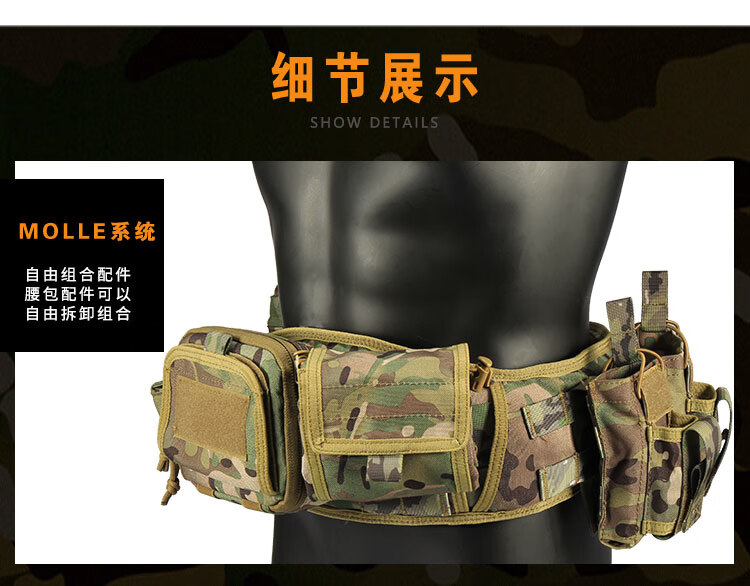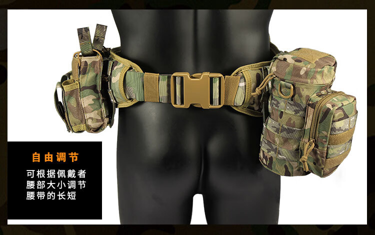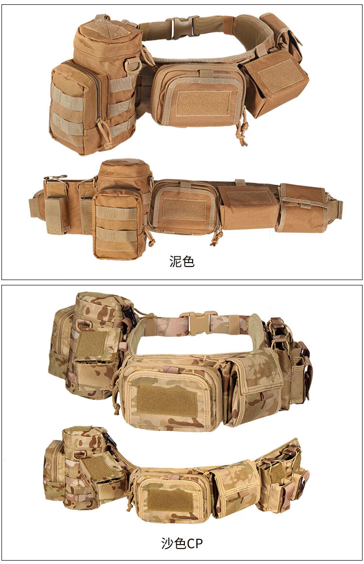 京逸户外登山战术腰带8件套多功能腰封快拆军迷竞技装备CS作战腰挂包 卡其色-战术执勤腰封八件套【适 均码