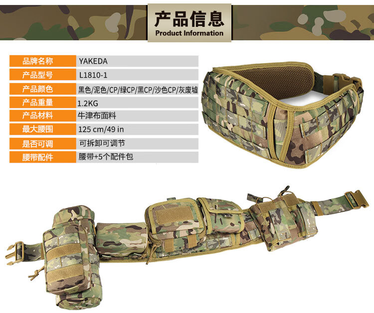 雅科达新款MOLLE多功能八件套战术腰封耐磨战术执勤特种装备腰包腰带 黑色 均码