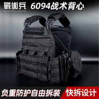 战术兵黑色特种6094训练战术背心防弹防刺快拆马甲负重携行具 背心+2.3mm防D防刺板