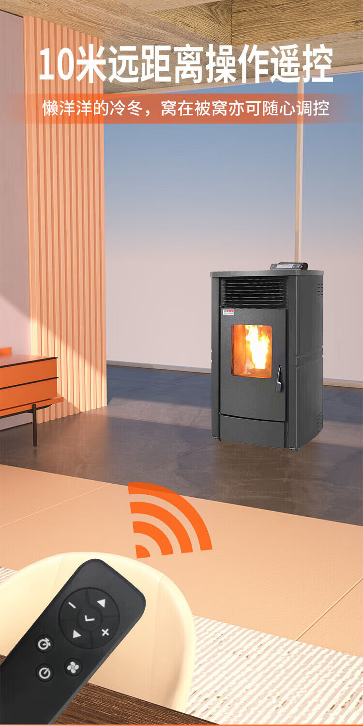 昊润通颗粒取暖炉生物质无烟柴火炉子农村家用室内客厅办公室别墅采暖炉 智焰F-10(30-100㎡)(送烟筒配件)