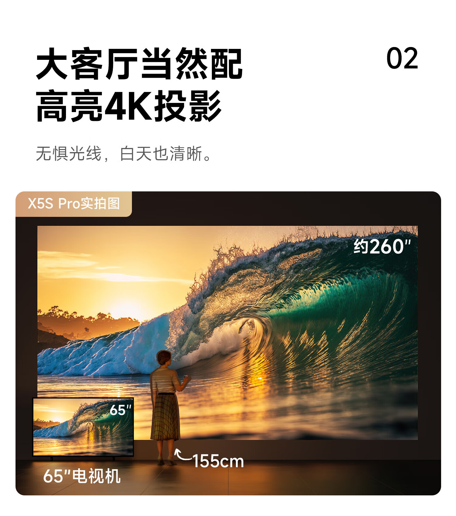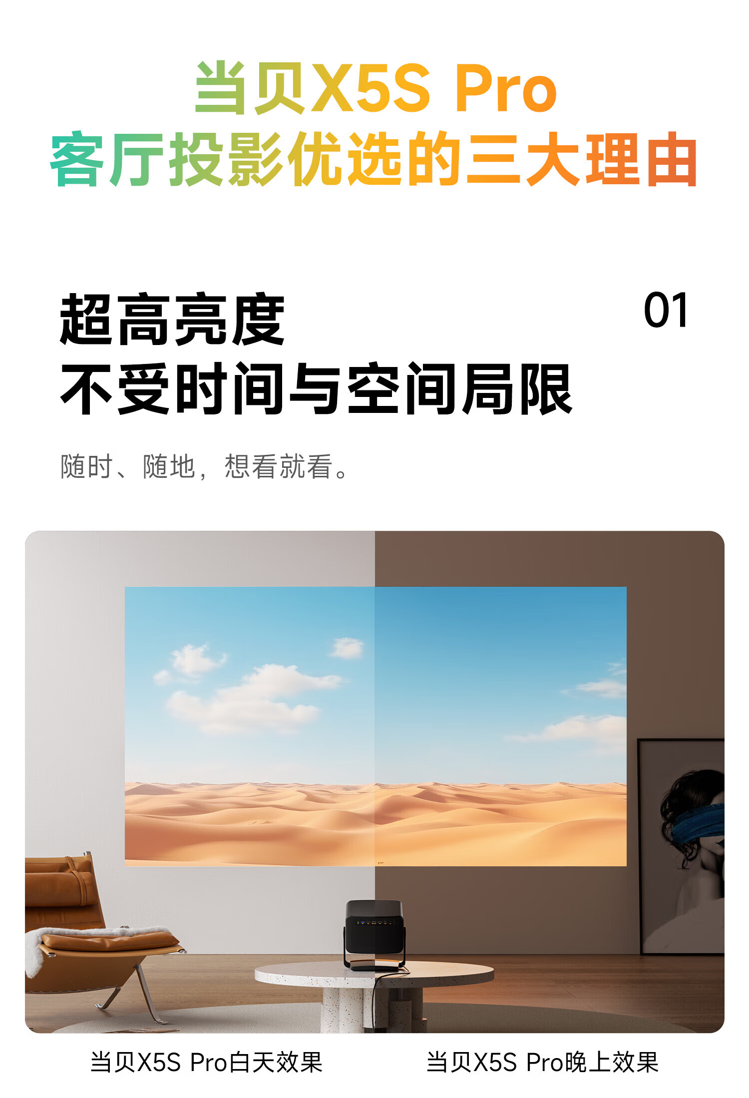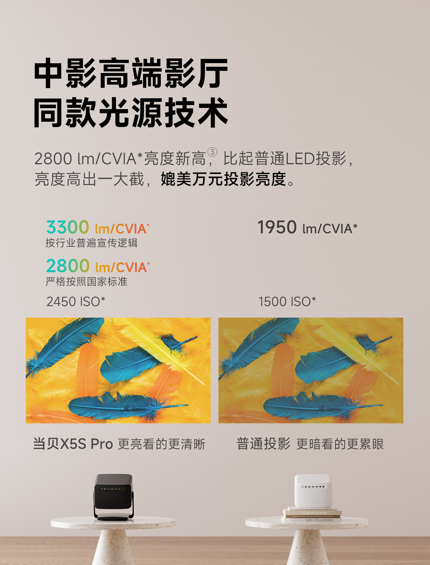 当贝X5SPro 4K激光投影仪家用高亮智能全高清白天客厅卧室家庭影院 X5SPRO
