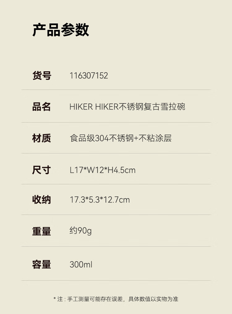 伯希和(Pelliot)HIKER雪拉碗户外露营野炊餐具不锈钢便携调料碗16307152曜石黑