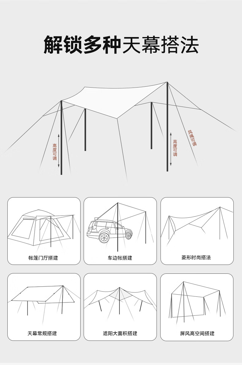 山趣(ShineTrip)户外铝合金天幕杆05系全收缩2.3/3米露营轻量化帐篷门厅支撑杆 隧光黑3米 2根