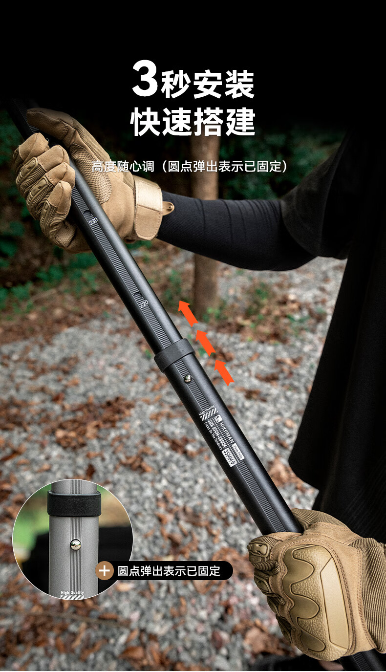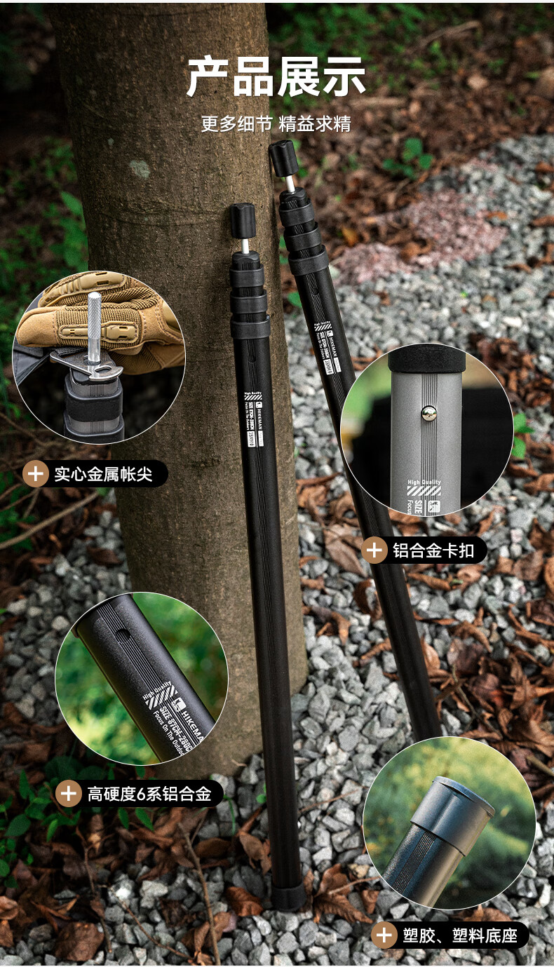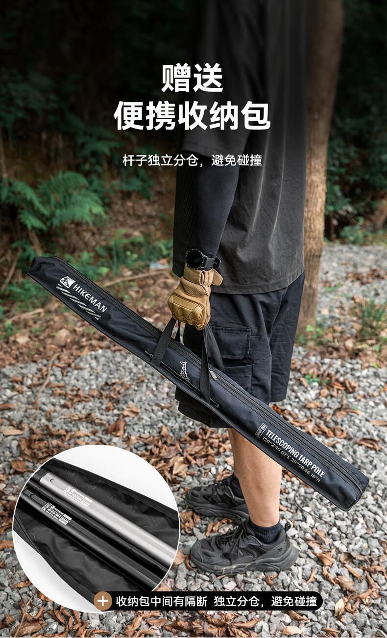HIKEMAN憨客天幕杆户外加粗铝合金天幕支架帐篷门厅支撑杆高强度伸缩杆子 两根【幻影黑】新一代升级加粗加厚