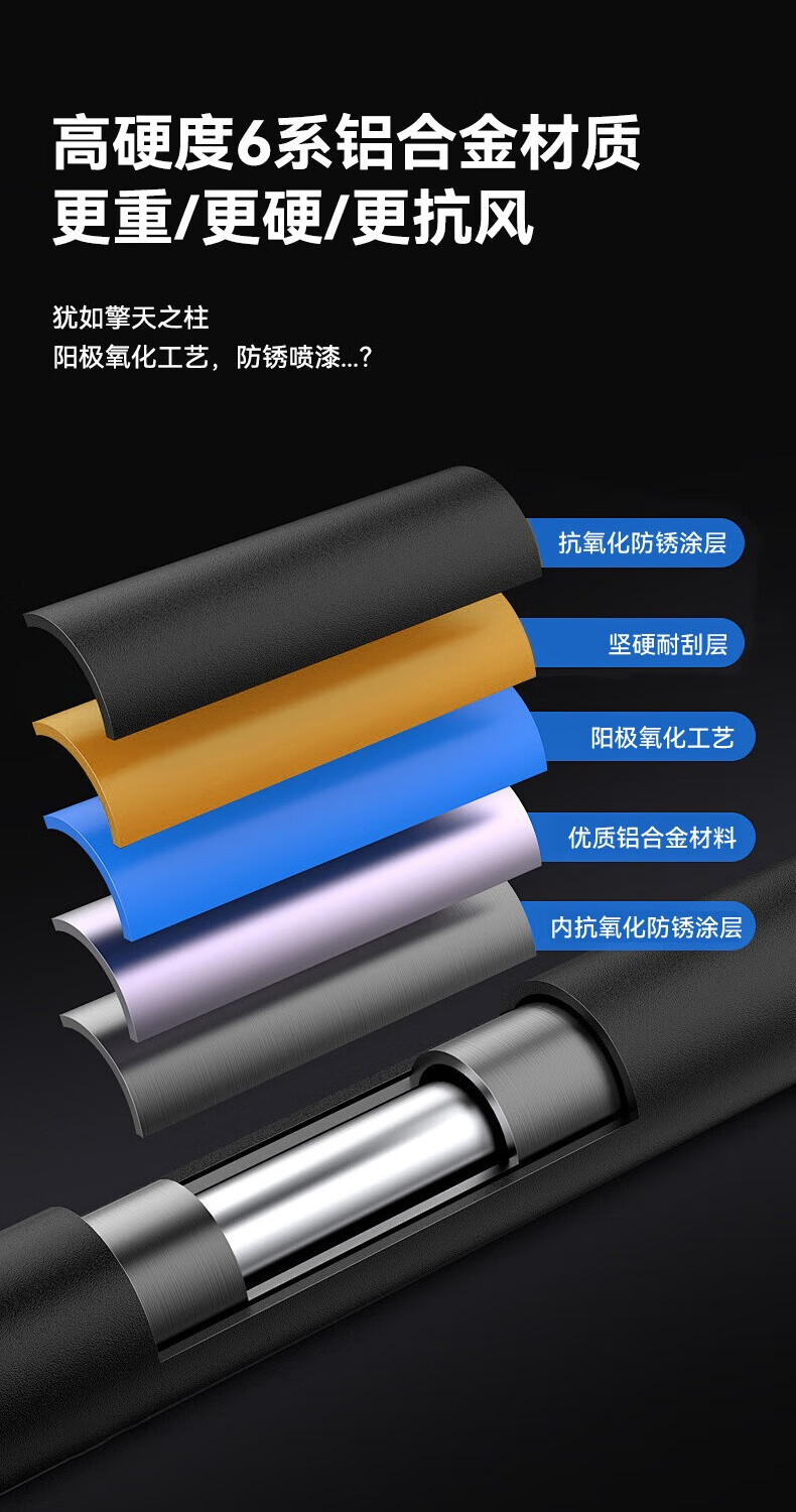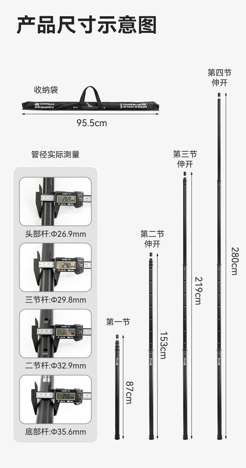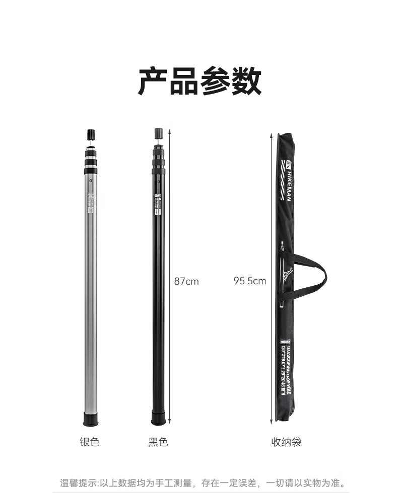 HIKEMAN憨客天幕杆户外加粗铝合金天幕支架帐篷门厅支撑杆高强度伸缩杆子 两根【幻影黑】新一代升级加粗加厚