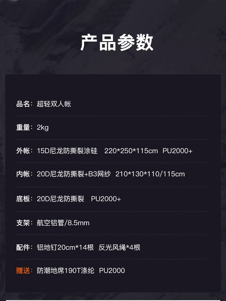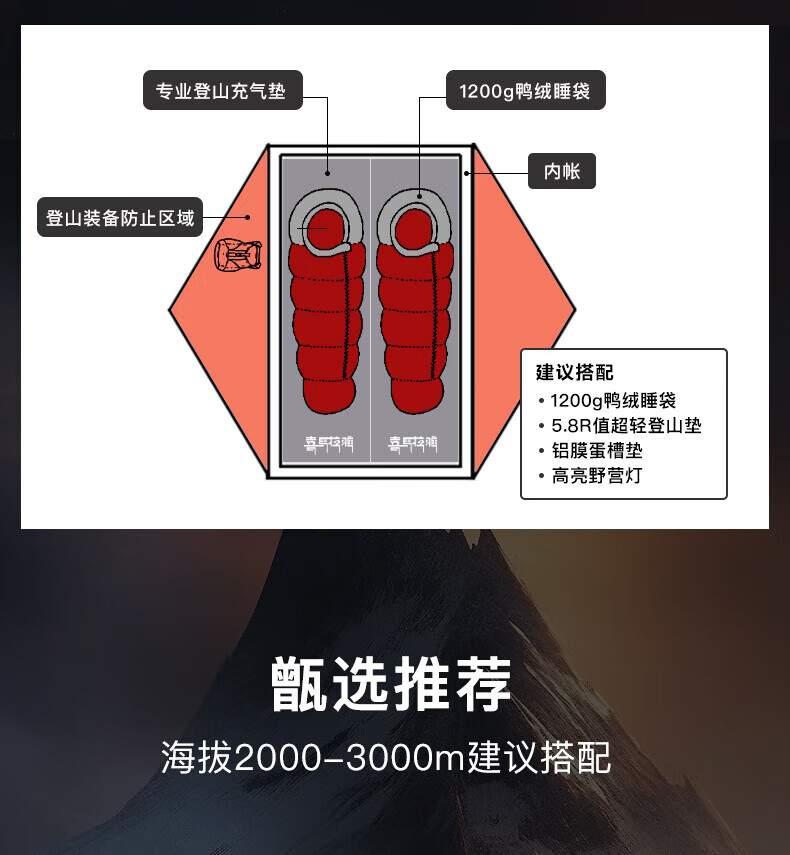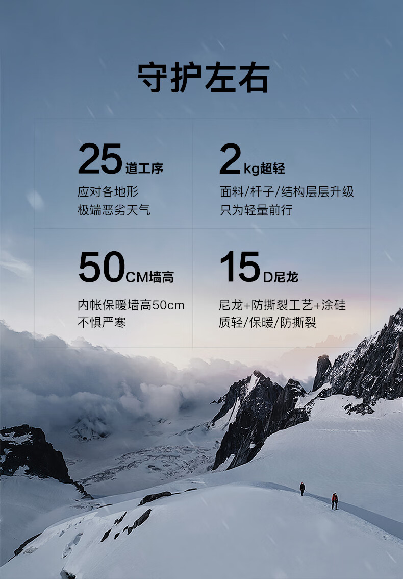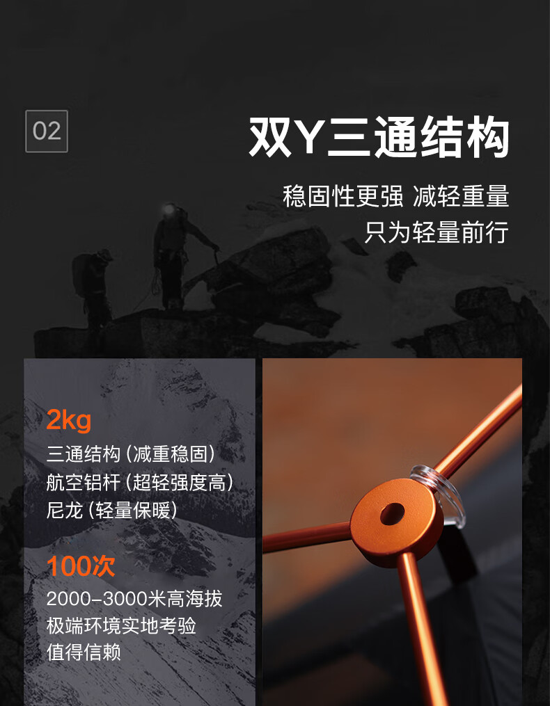 喜马拉雅帐篷户外冬季露营装备全套双人超轻保暖过夜防寒野外帐篷防暴雨 超轻双人登山帐(防水地席)