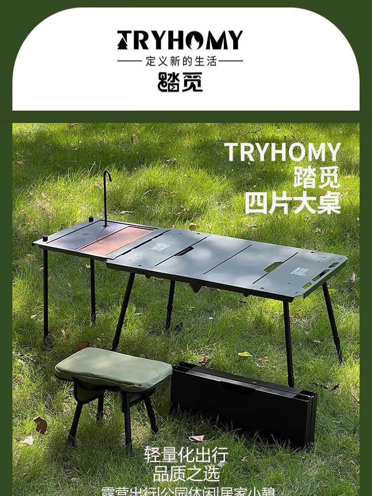踏觅户外全新四片大桌铝合金多人大桌多功能折叠户外露营便携餐桌 灯架