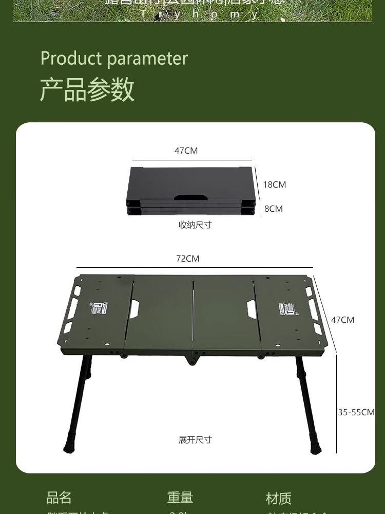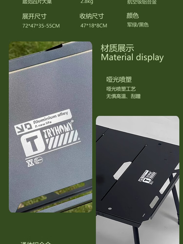 Guide Series户外折叠桌子igt对折铝合金野外便携式露营超轻量化可升降战术桌 BL-219款对折桌(墨绿)