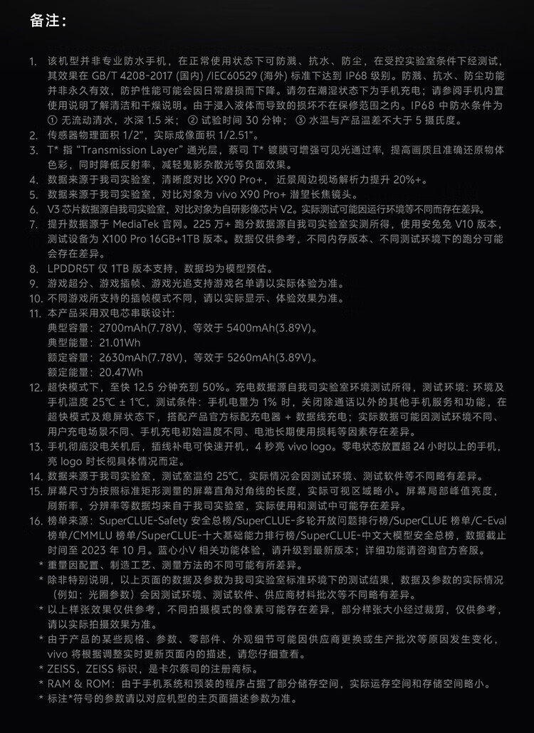 vivoX100/X100pro 天机9300 5G全网通双卡 蔡司影像 蓝海5000毫安电池 X100Pro 辰夜黑 16GB+1TB 单机+第三方品牌快充+店保1年