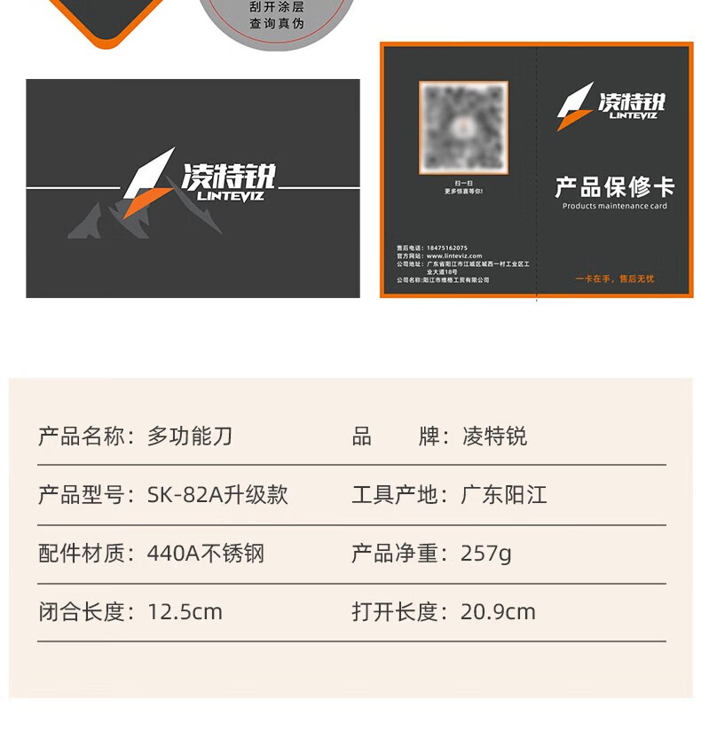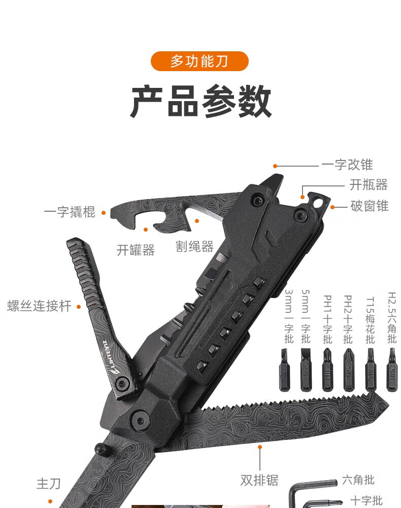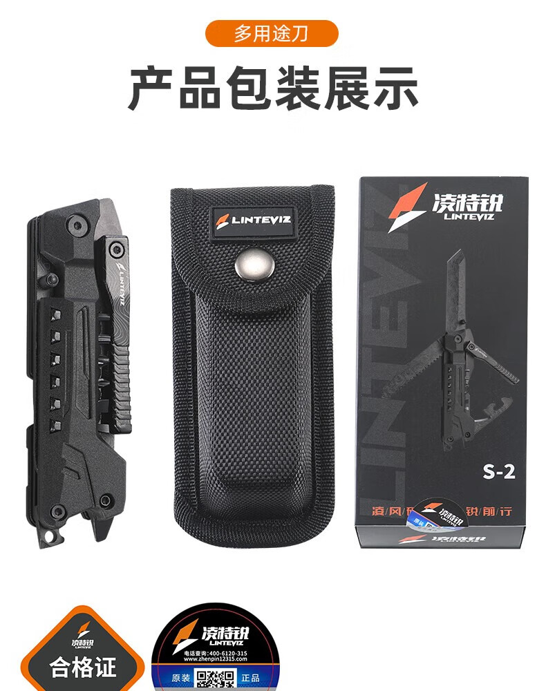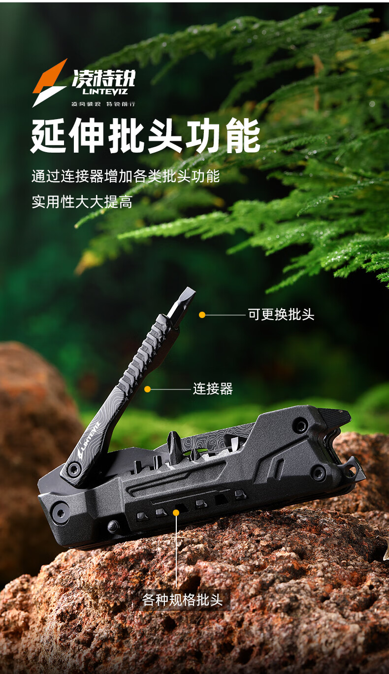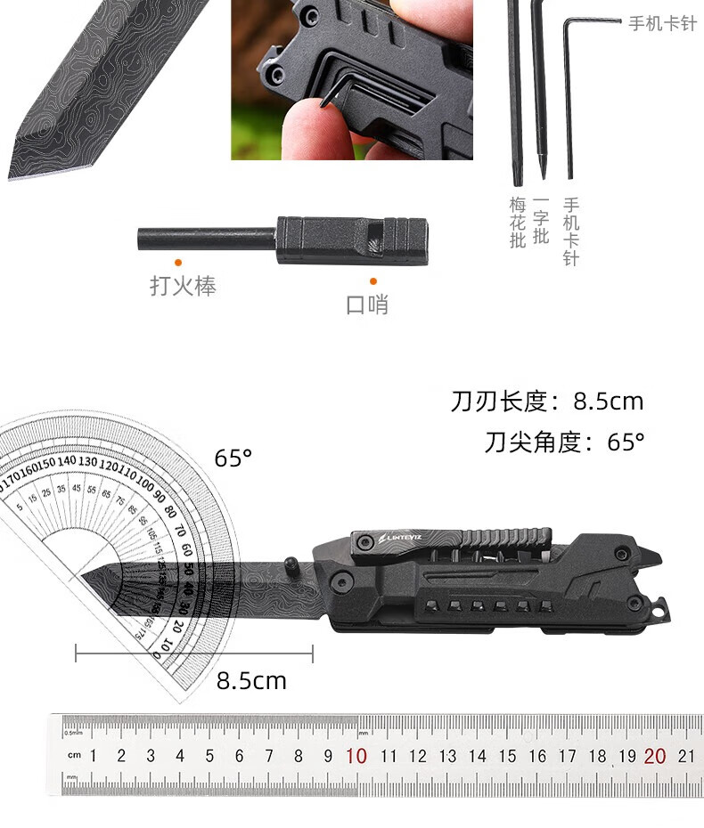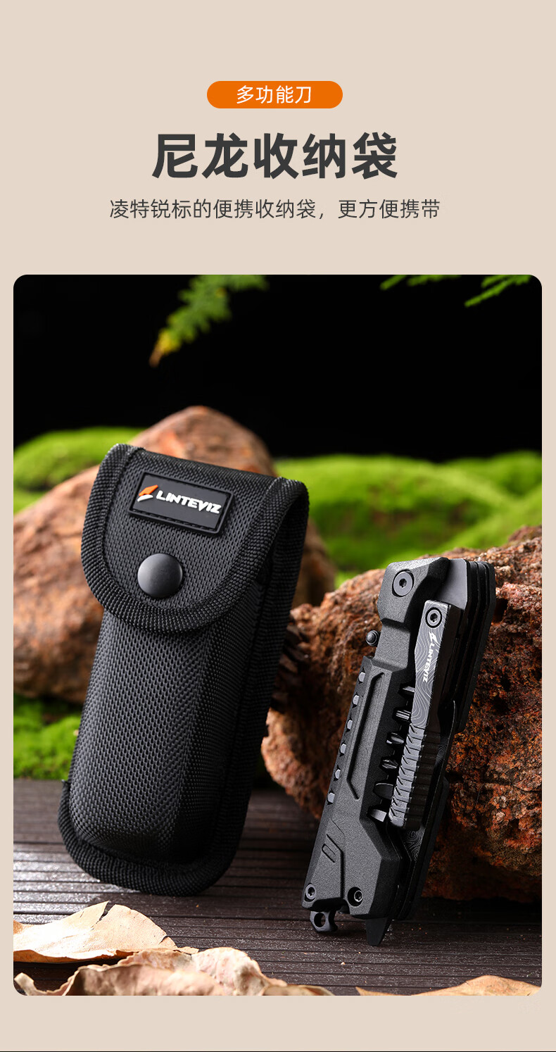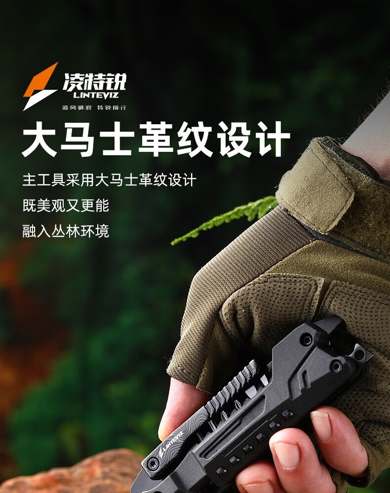 凌特锐多功能便携折叠钳工刀户外应急救援热卖款工具组合户外随身装备 喷砂镜光 打开尺寸: 17.5cm