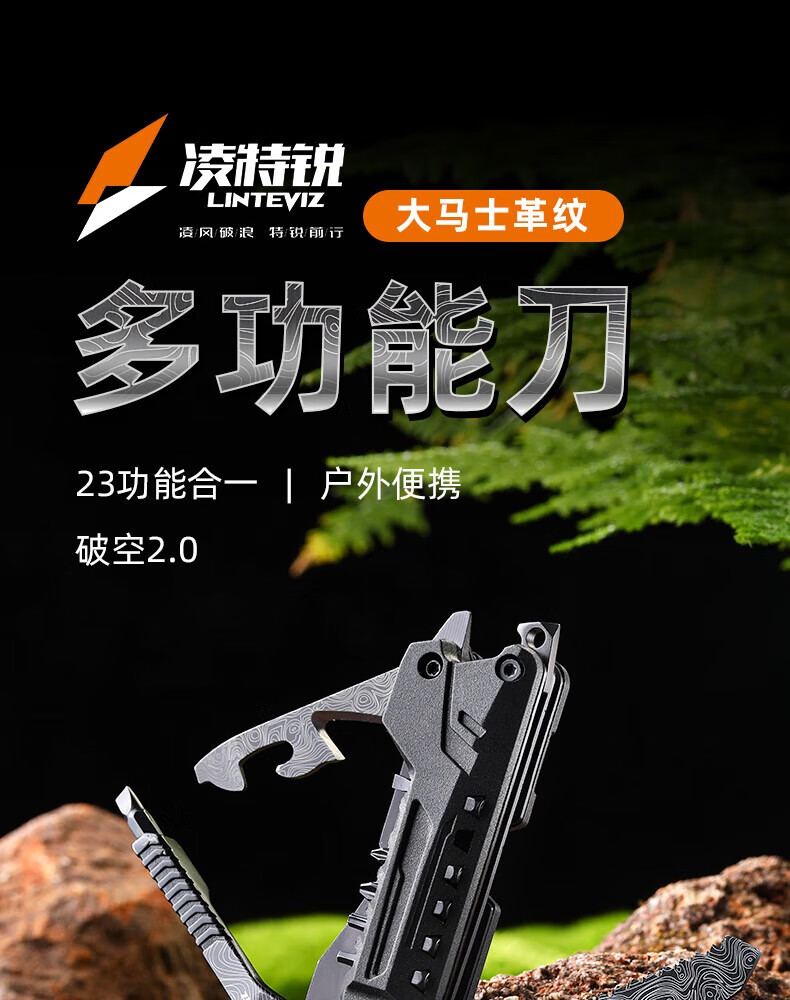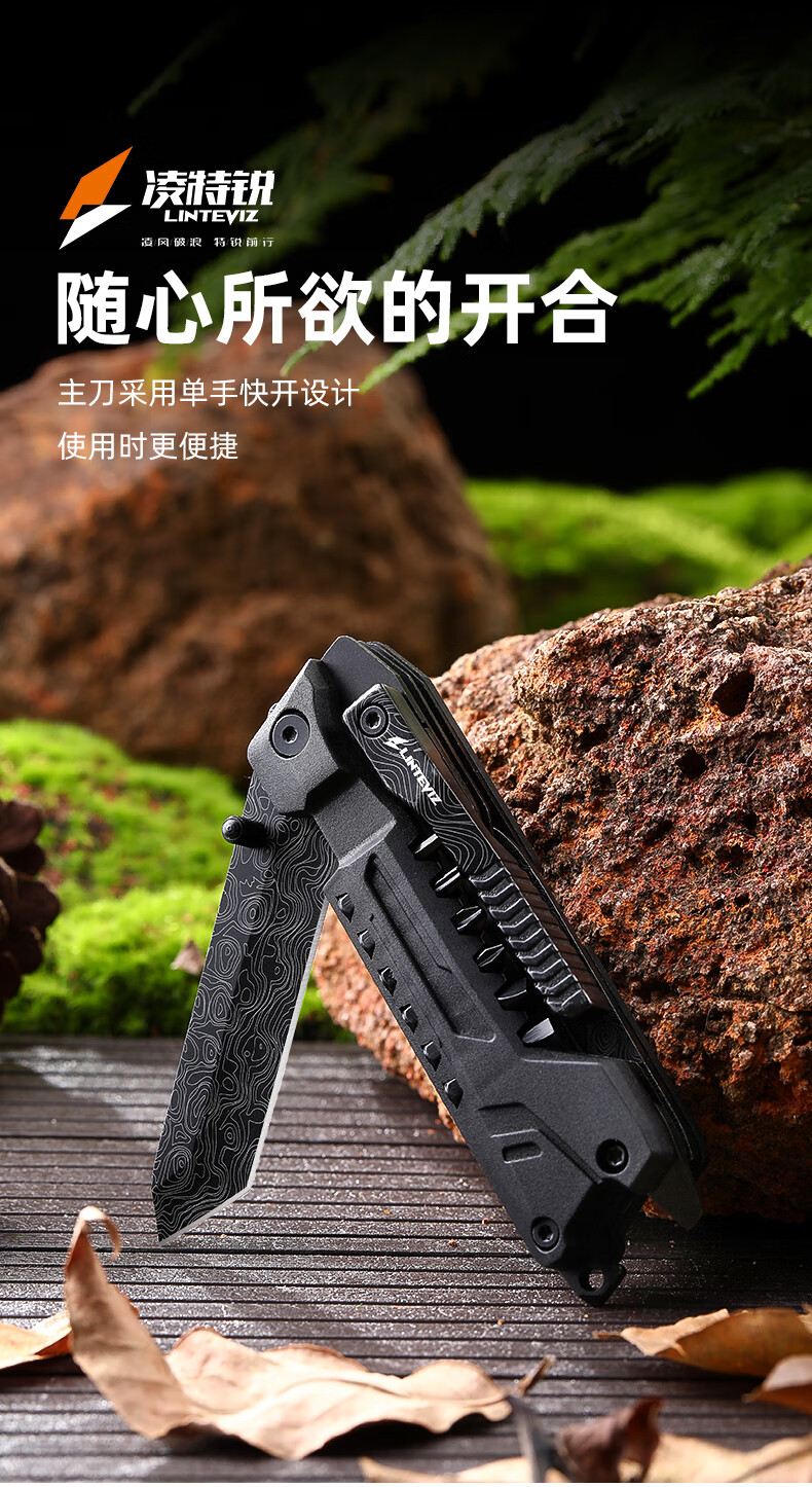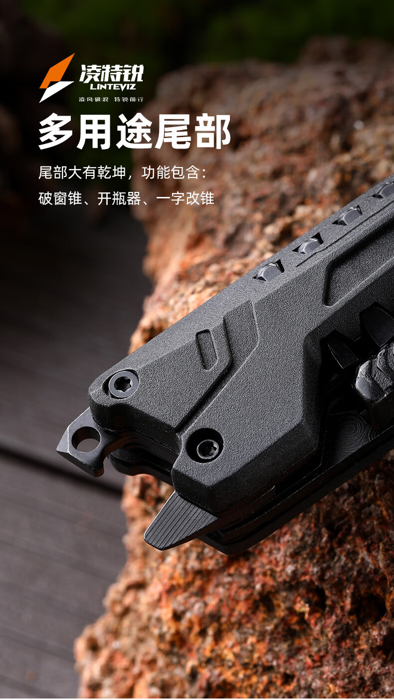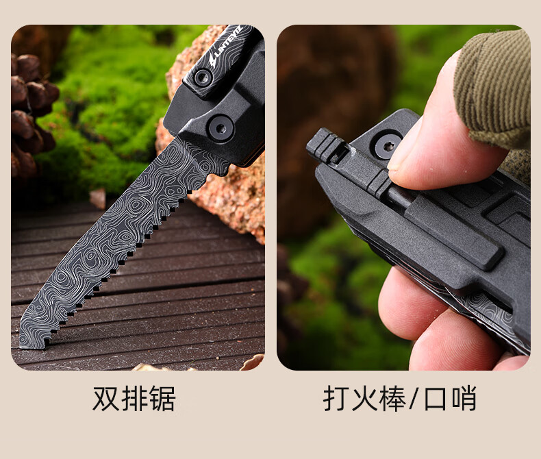 凌特锐S-2A户外多功能折叠小刀便携多用车载破窗应急求生刀瑞士刀 S-2A升级版(大马士革纹)
