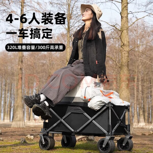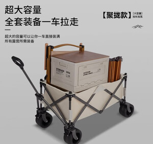 京物露营推车聚拢户外折叠营地车摆摊野营拖车手拉车小推车野餐车桌板 暗夜黑 500L 有刹车 四面聚拢款+桌