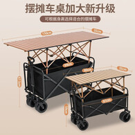 鹿营地摆摊推车露营车一体车小吃车超大款聚拢可升降地摊移动夜市餐车 卡其车+120x60黑桌