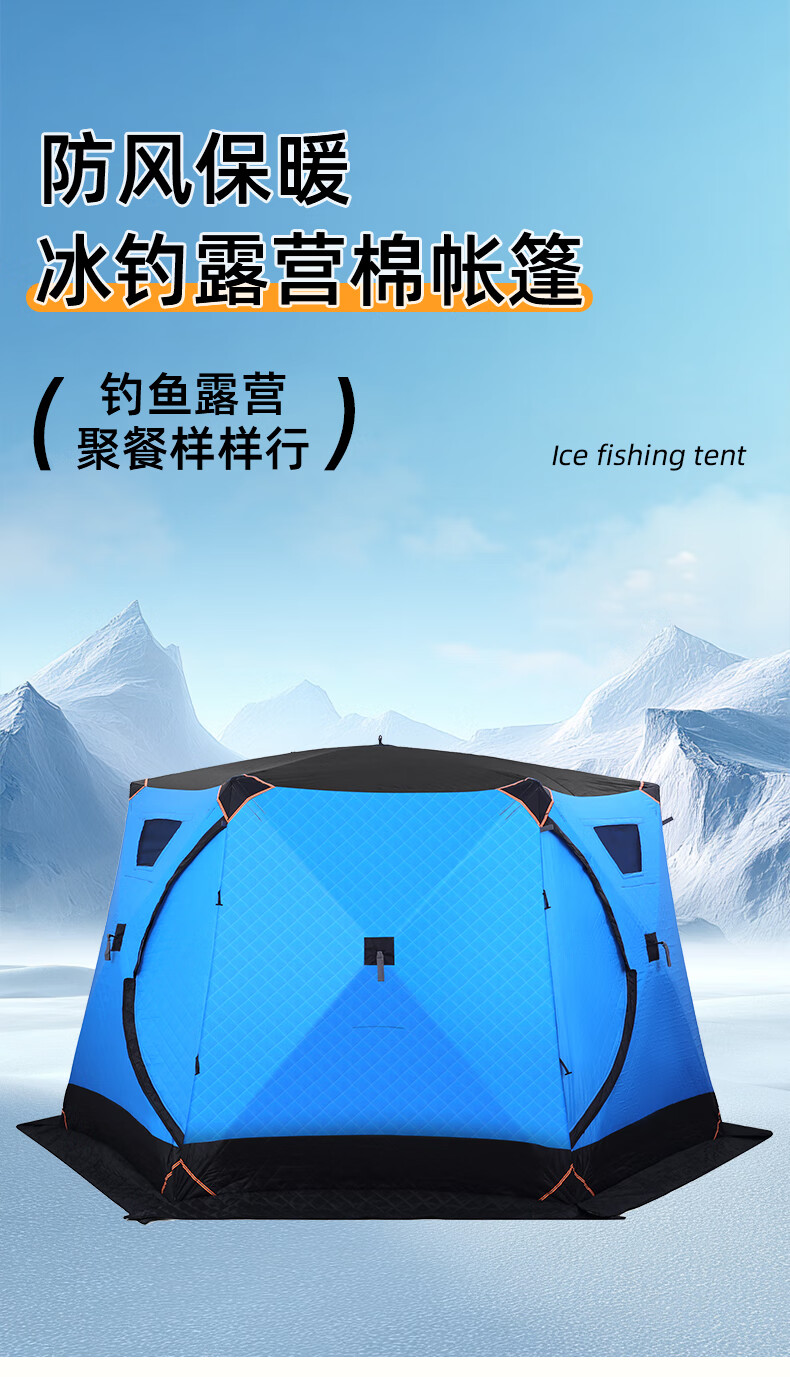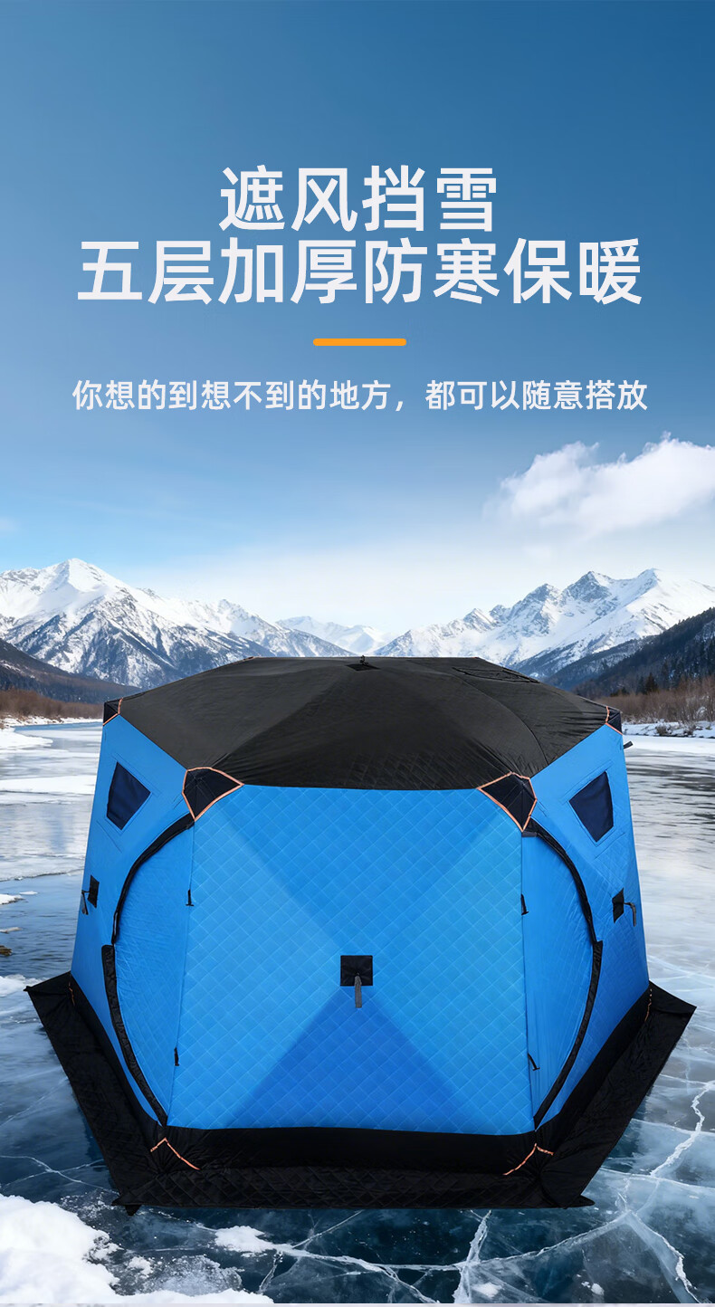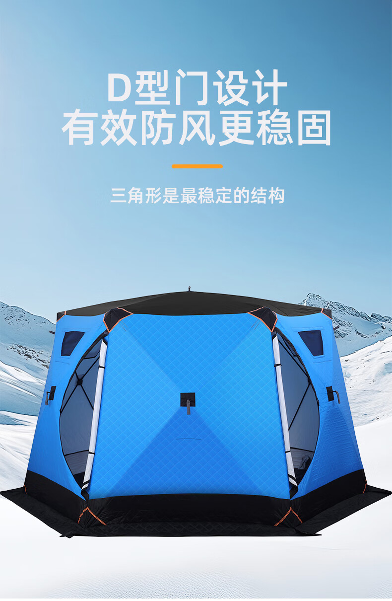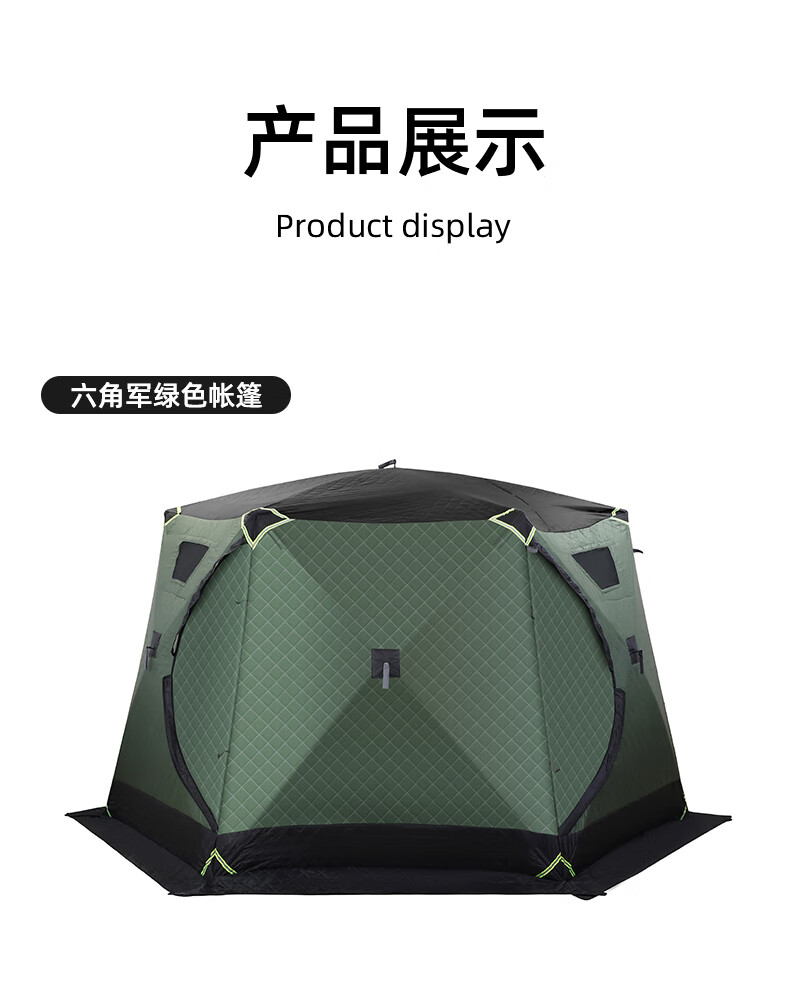 新款大六角帐篷冬季户外露营冰钓帐篷五层防寒保暖耐用抗磨 【防风保暖】8-20人六角帐篷-军绿色