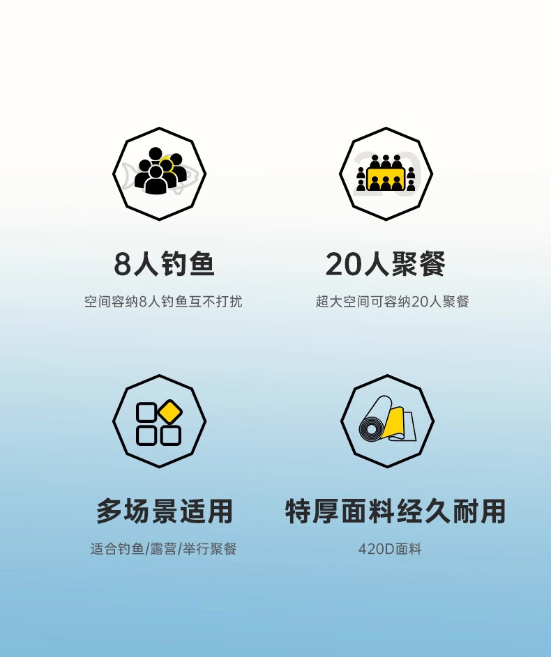 何佳功新燕尾天幕户外露营懒人免安装加厚黑胶防晒遮阳防雨速搭天幕 速搭型12㎡银胶天幕3.3*3.6米2-4人(1