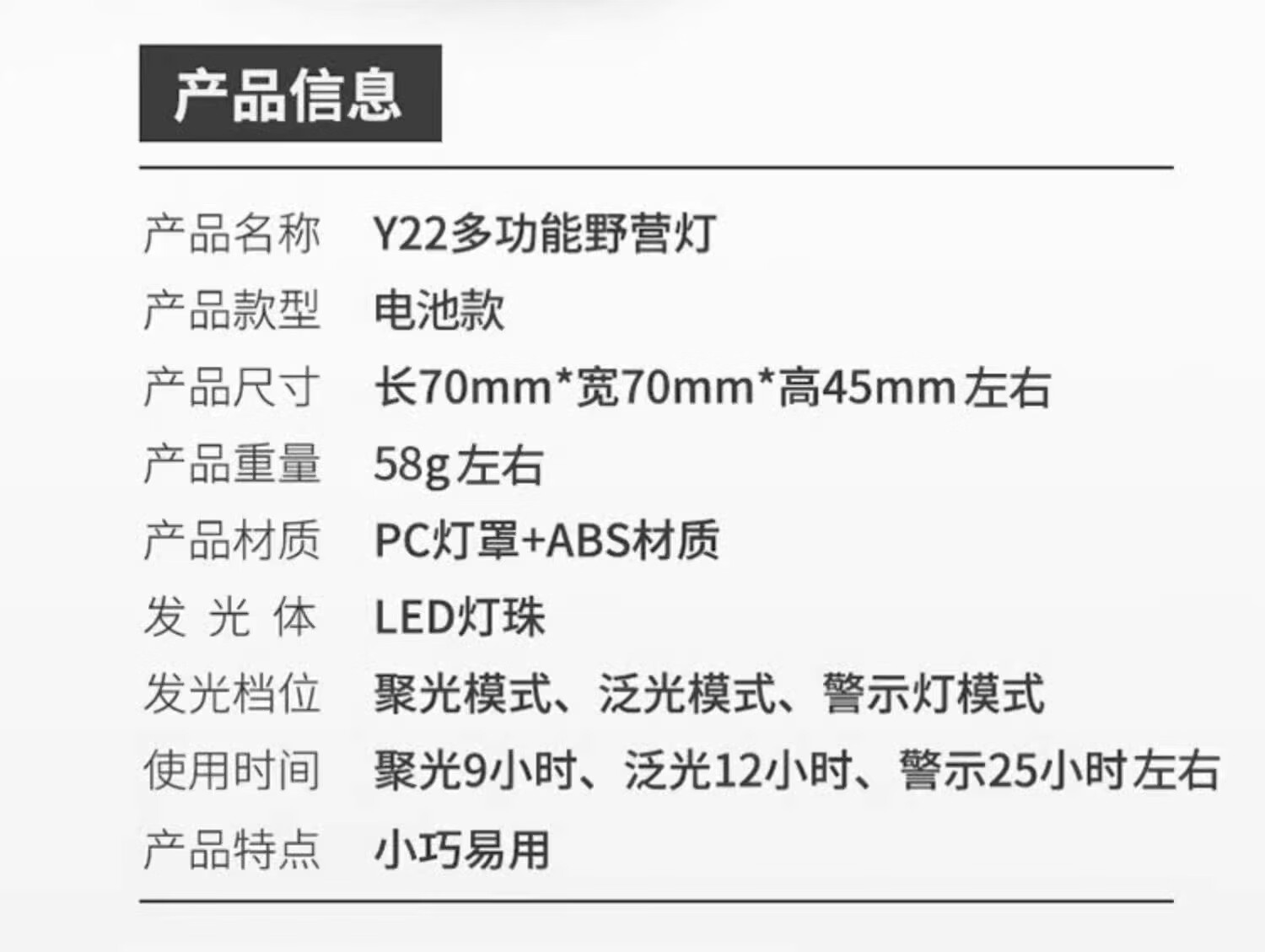 YSR-LF03帐篷小灯-充电款桔炳金边