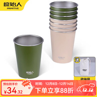原始人户外露营杯子折叠便携水杯野营304套杯不锈钢茶杯水壶套装 【卡其】304不锈钢套杯4只装