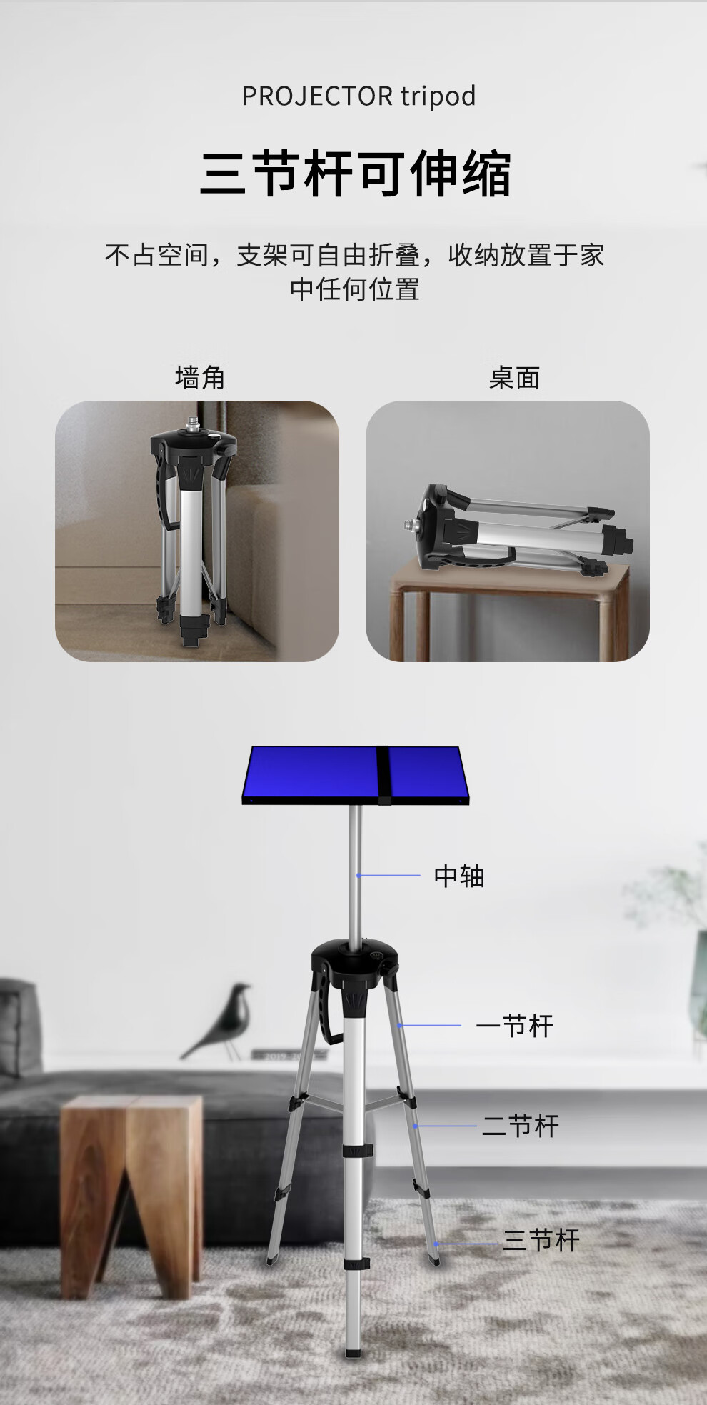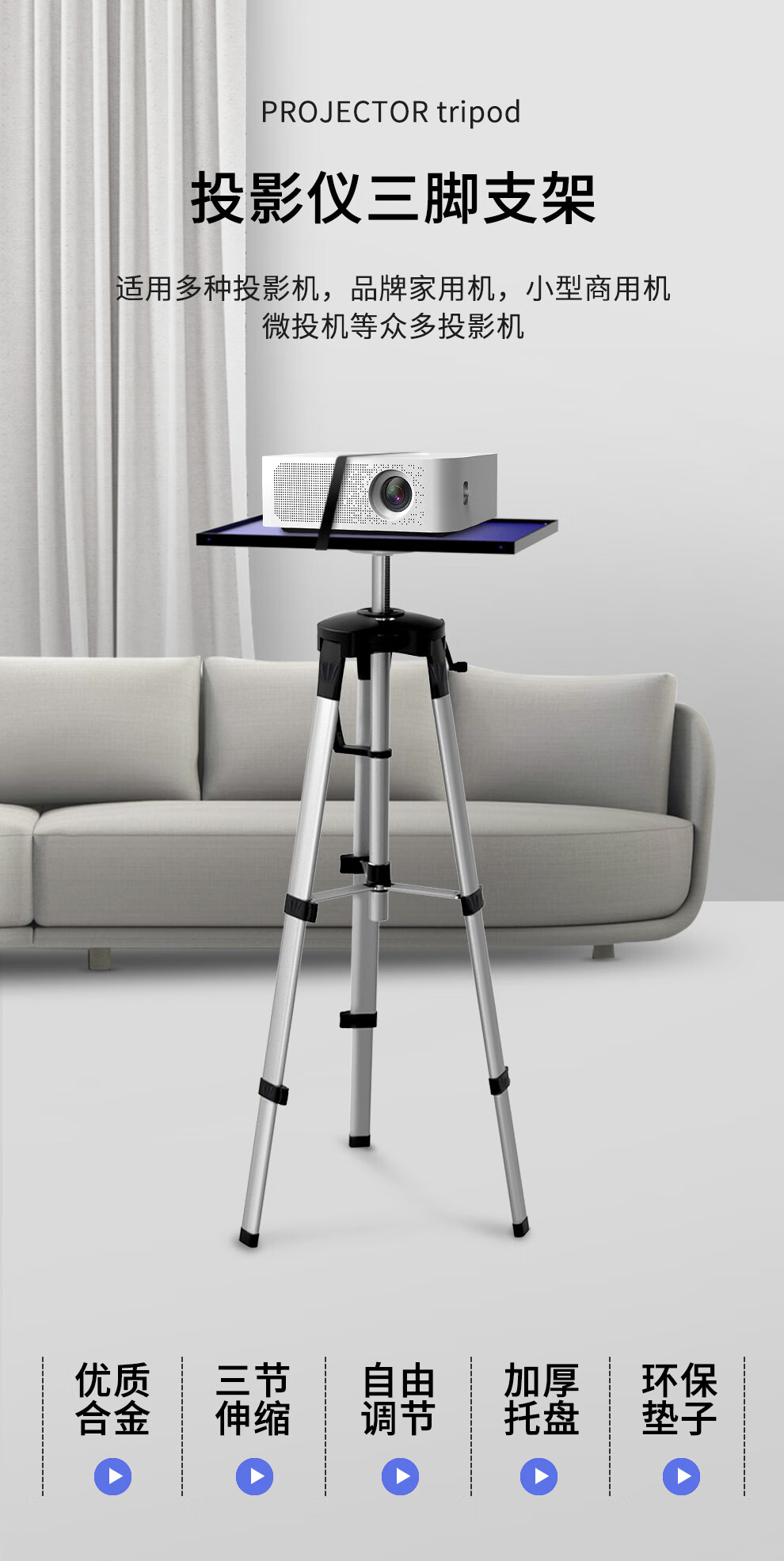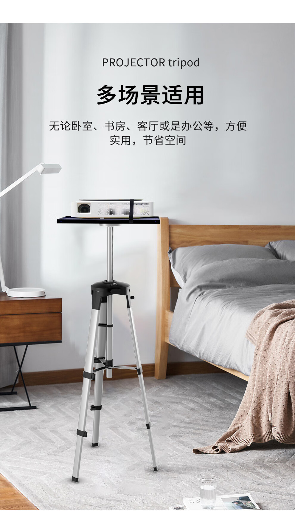 虾皮 投影机架子支架投影仪落地三脚架家用床头托盘摆放铝合金材质置物架三段调节支架投影仪通用支架 铝合金三脚托盘支架
