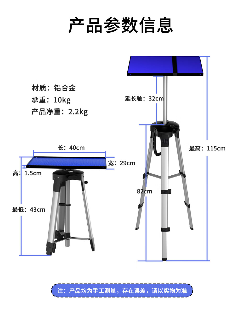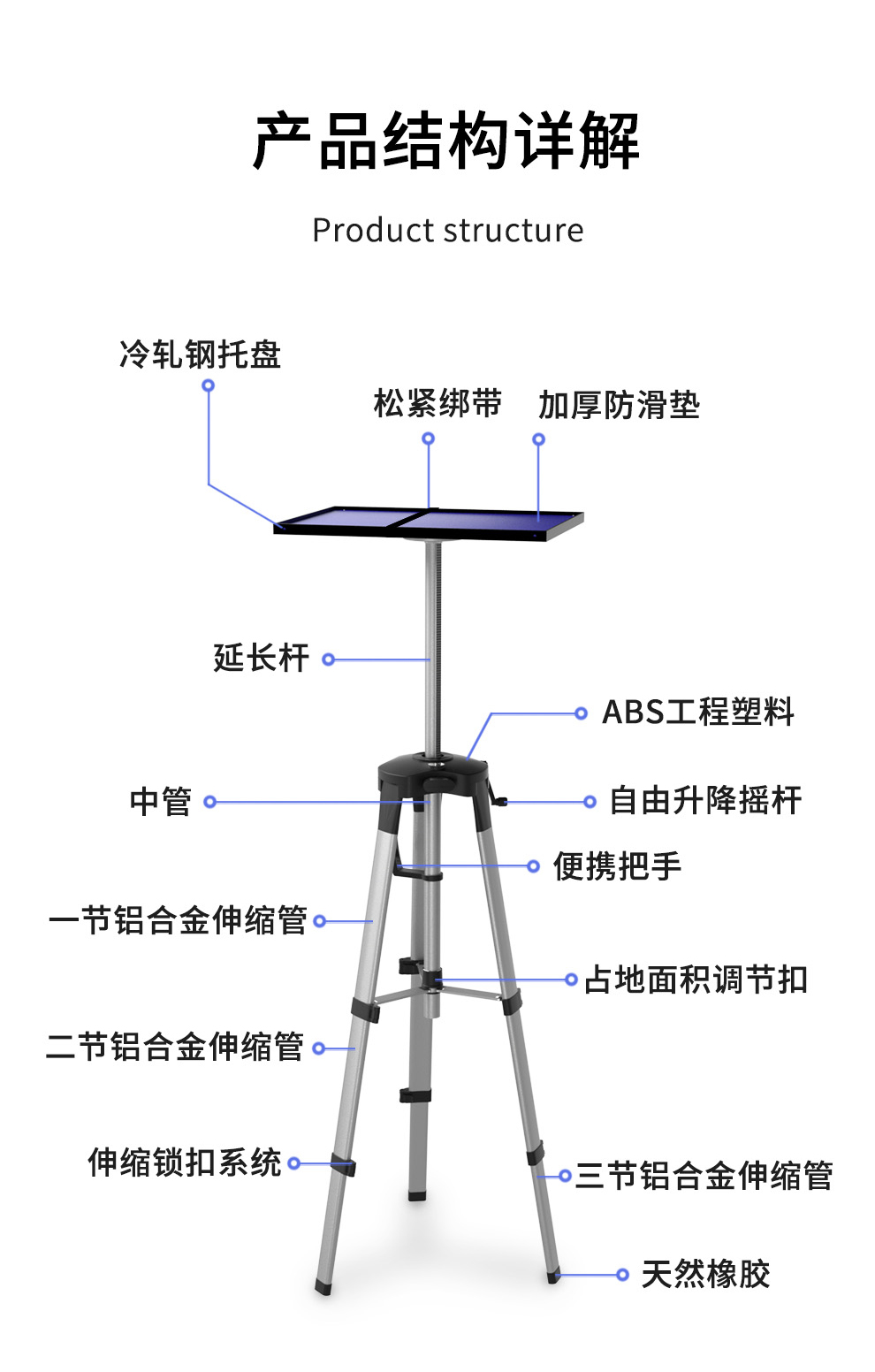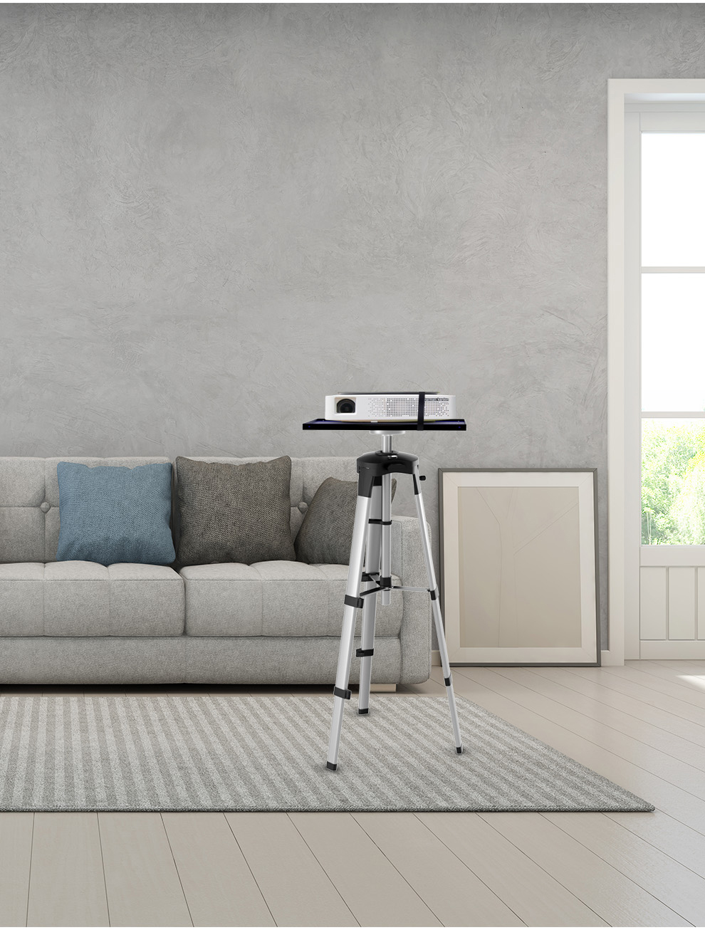虾皮 投影机架子支架投影仪落地三脚架家用床头托盘摆放铝合金材质置物架三段调节支架投影仪通用支架 铝合金三脚托盘支架