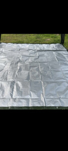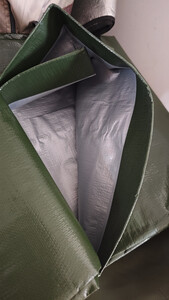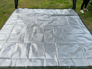 总的质量不错,他家的铝箔防潮垫也买了。买来露营用,用在帐篷防水防潮当地布用,防水防潮这个肯定比地布好啊!看看大货车的篷布就是这个材料的。价格只是地布的一半,携带收纳肯定没有地布小。这个篷布详见照片尺寸。有一点胶的味道。注意收纳折叠最好按原来的折叠,折叠多了肯定会老化损坏的,可以折的更小些。户外野营实际使用等用后再补评。