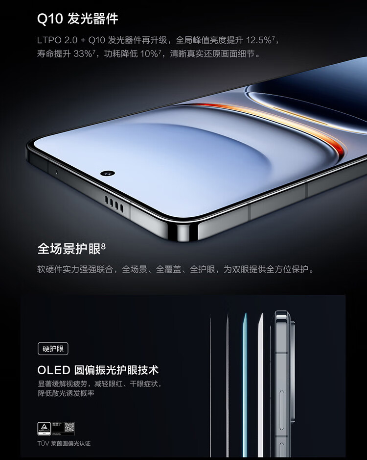 德国莱茵护眼;高频PWM调光;SGS认证;LTPO屏幕