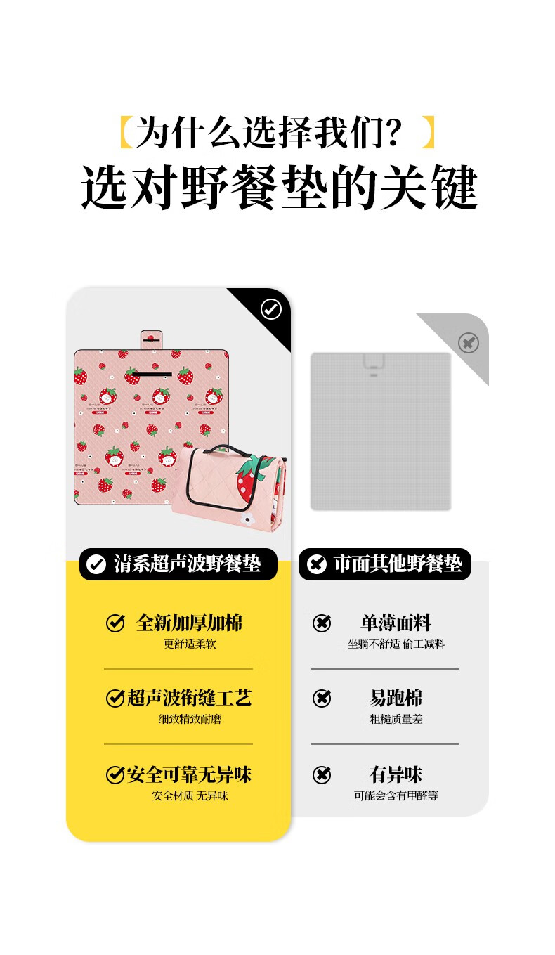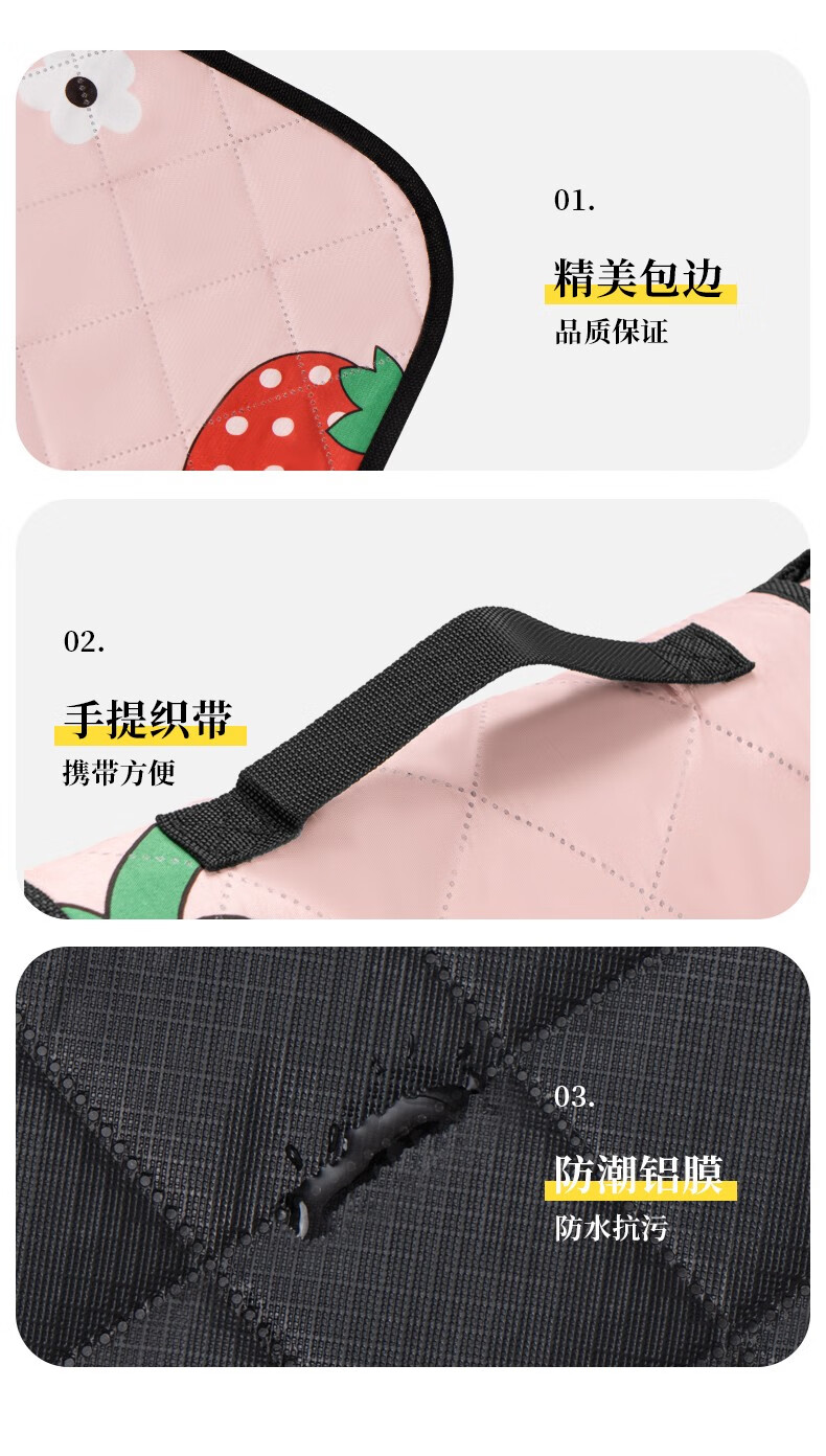 买来带孩子野餐用的,垫子打开很大,叠起来小小的不占地方,图案也很好看,特别满意,京东自营买的商品有保障,快递也够快,隔天到货,已经推荐给朋友了!