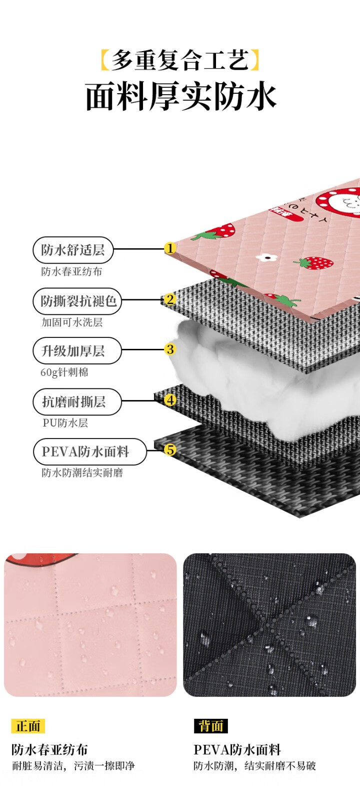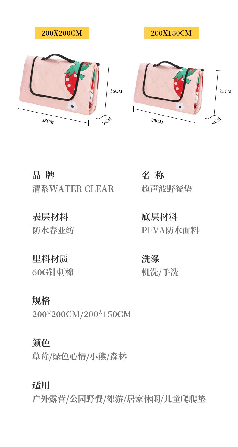 清系可机洗野餐垫户外野营超声波加厚野餐垫防潮垫便携爬行垫 200小熊