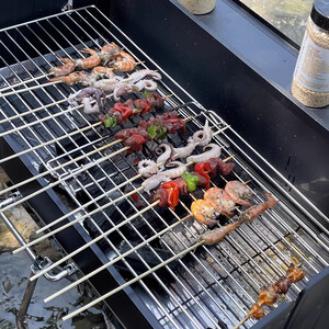非常不错,安装方便,卡扣收纳方便,收纳袋容量很大,烧烤完用钢丝球也比较好清洗,终于把大家约起来了组织了一场家庭BbQ。食材准备多了完全吃不完哈哈哈哈哈,周末在家院子里BBQ非常惬意,忘记工作的压力,感受生活。