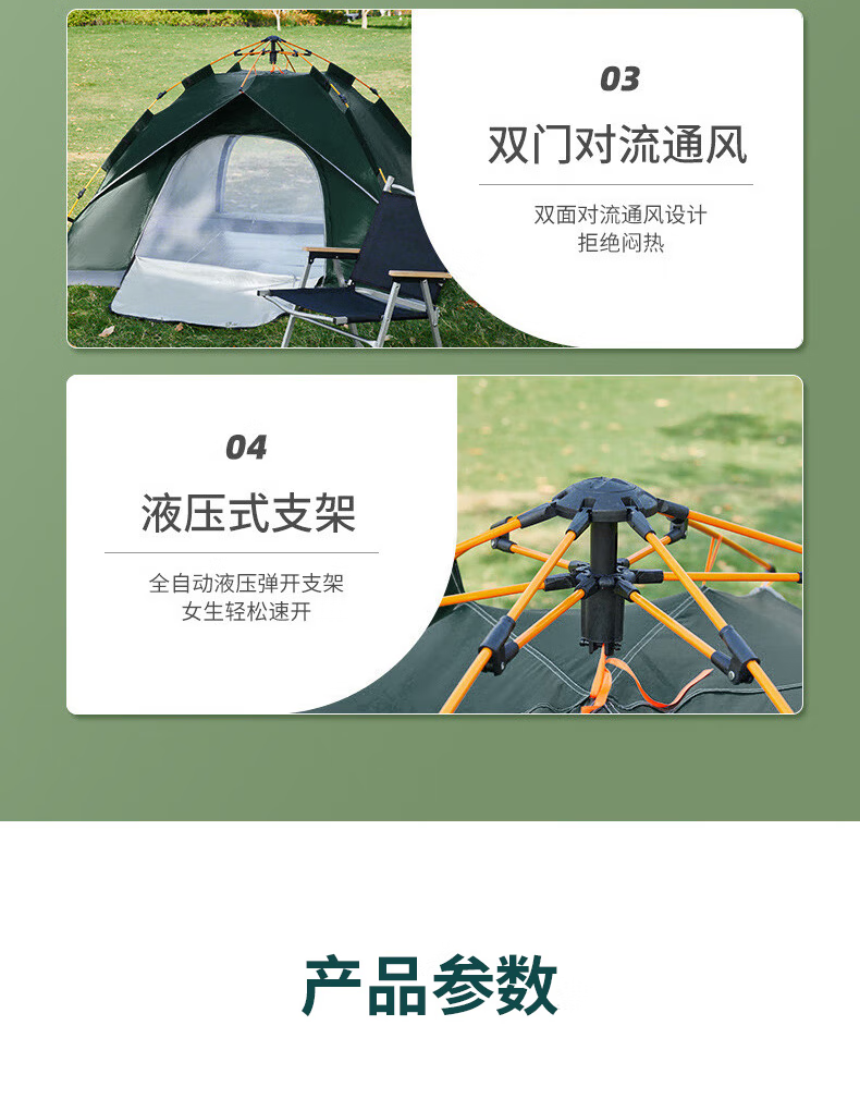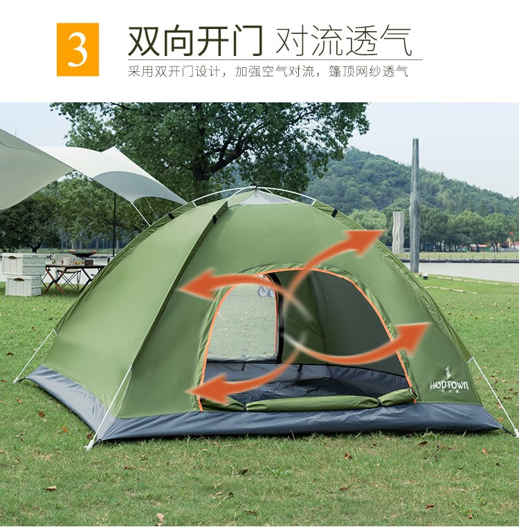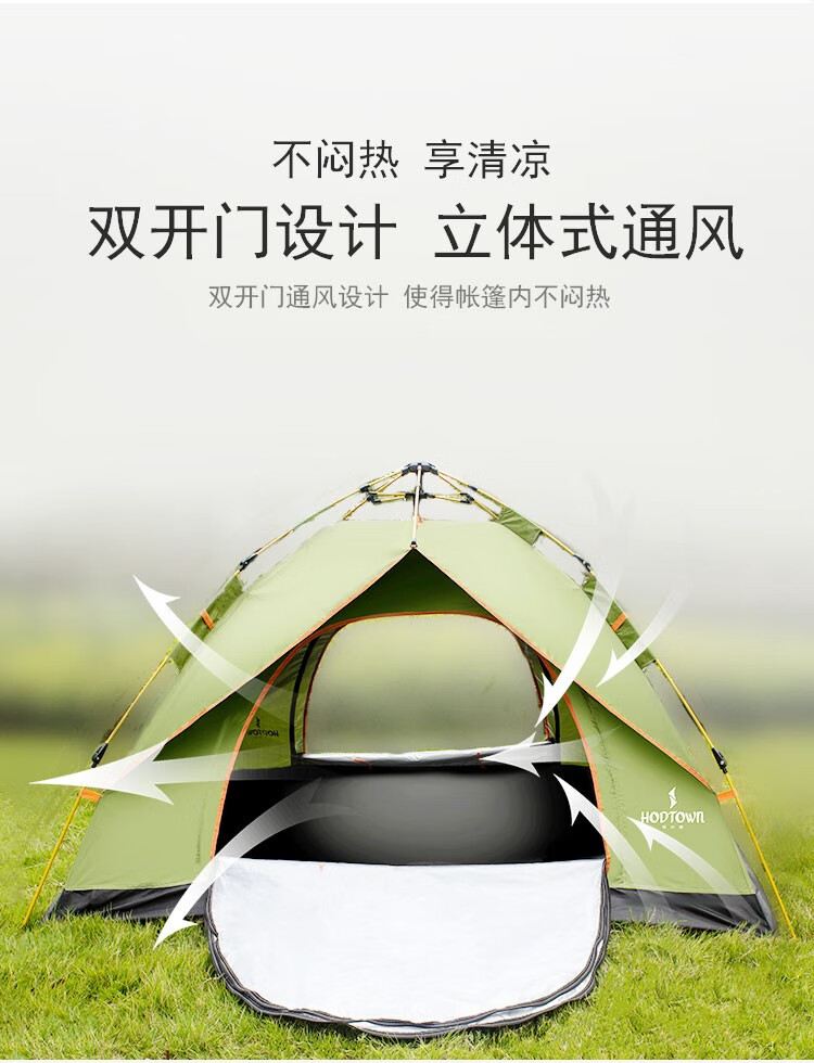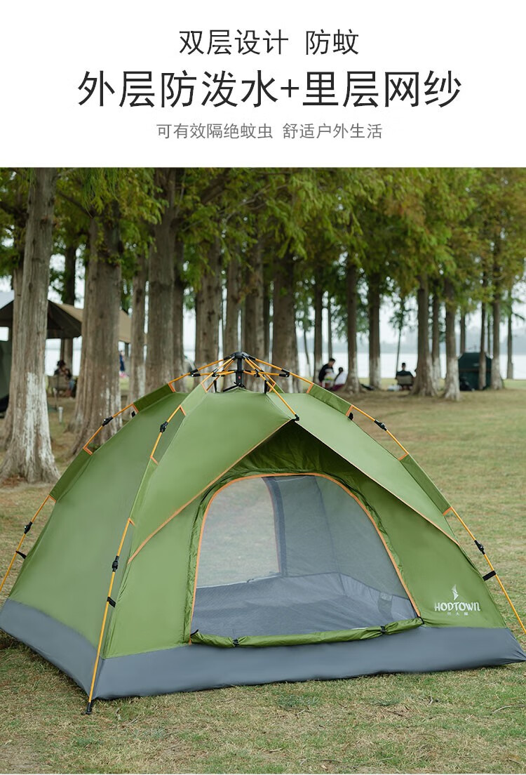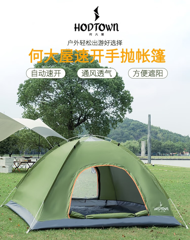 何大屋(Hodtown) 全自动户外帐篷防雨户外双人双层免搭建露营野营3-4人 自由天地户外帐篷HDW1505W