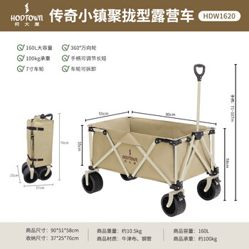 何大屋(Hodtown)户外露营推车营地野餐便携折叠拉杆车野营手拉拖车聚拢款 聚拢型露营车HDW1620 160L 有刹车