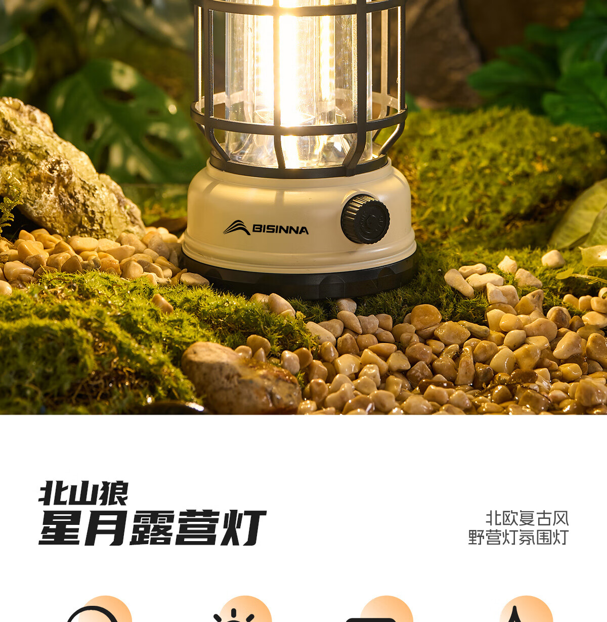 买过北山狼的帐篷,觉得太棒了!又逐渐入手露营周边配套产品!这款灯颜值很高,刚拿着没充过电,感觉亮度一般!冲完了电再看看!