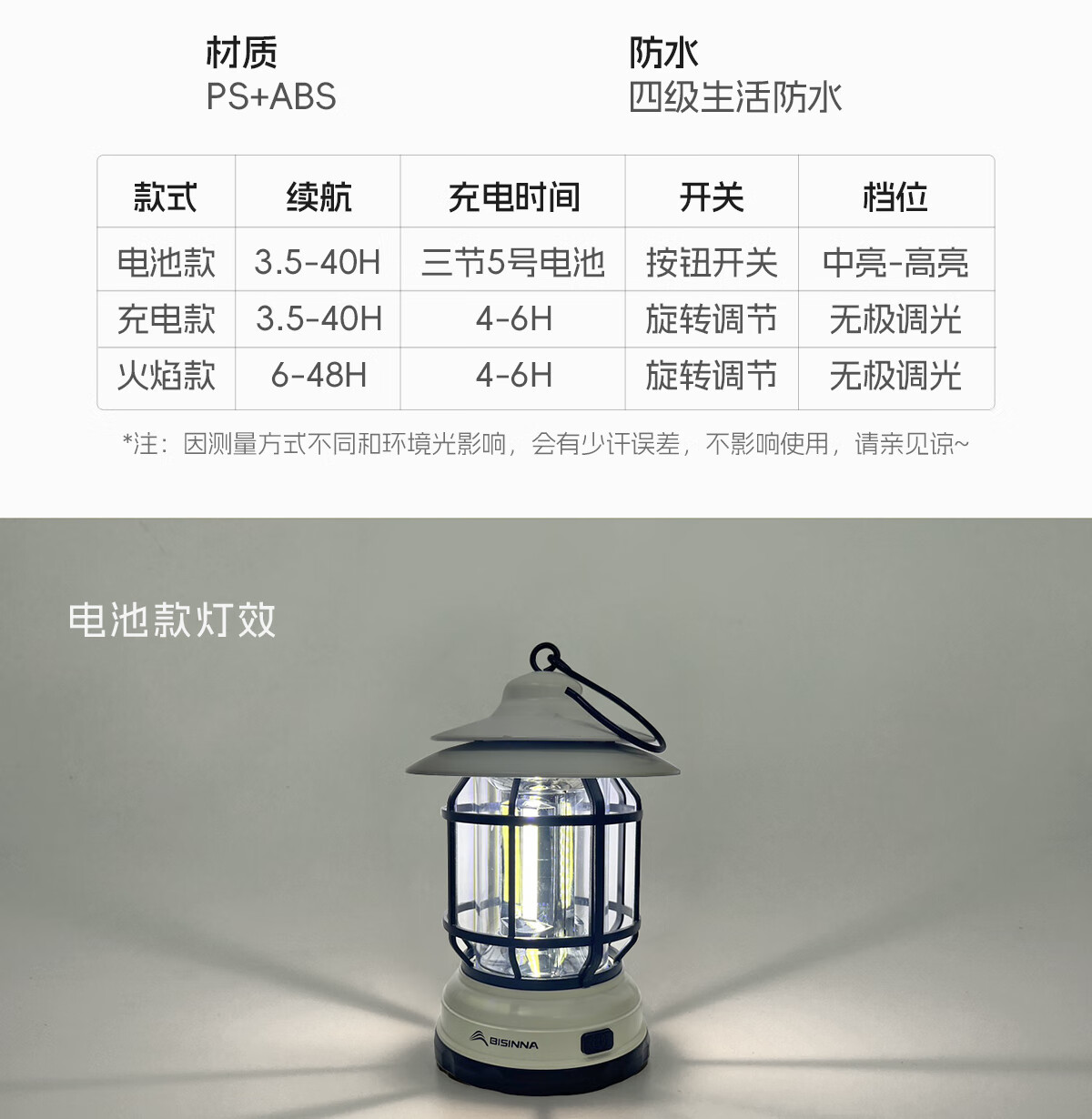 北山狼 户外露营灯多功能超长续航野营复古氛围LED照明灯 火焰款白色